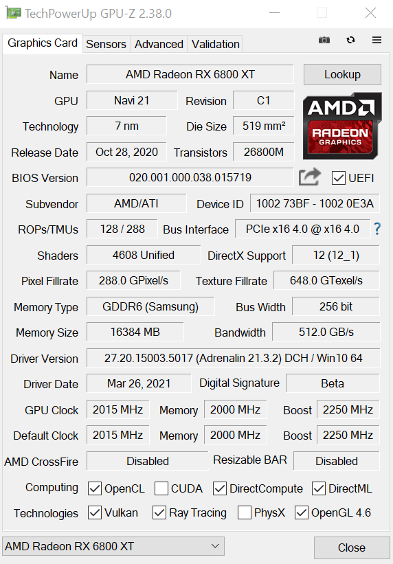 - Установить последнюю версию Windows 10 1903/1909. Как это сделать можно прочитать здесь https://www.microsoft.com/ru-ru/softwar ... /windows10. - Осуществить подключение питания карты рекомендуется двумя отдельными кабелями во избежание возможных проблем с блоком питания, с самими кабелями и пиковым потреблением. - Использовать блок питания рекомендуемой производителем карты мощности. - Необходимо учитывать, что некоторые запущенные программы по мониторингу (afterburner, gpu-z и подобные) могут вызывать различного рода проблемы в работе карты и поведения карты в игре (статтеры, снижение fps, сбой в работе вентиляторов). В некоторых случаях были проблемы c оверлеем Adrenaline. (данная рекомендация может считаться устаревшей, в случае использования последних версий драйверов и обновлений Windows). - Разгон оперативной памяти может вызывать статтеры, вылеты или черные/синие экраны, если он был произведен без должного тестирования памяти на стабильность. Поэтому перед проверкой карты и ее разгонного потенциала рекомендуется сбросить разгон процессора и памяти. - Порядок установки новой карты: установить новую ОС -> установить драйвера чипсета -> установить прочие драйвера -> установить драйвер видеокарты. - Рекомендуется переустанавливать драйвер после переключения БИОСа на видеокарте, чтобы он (драйвер) корректно интерпретировал новые настройки (эта рекомендация Sapphire, написанная на бумажке, которая вложена в коробку с видеокартой). - Рекомендуется заполнить табличку OC potential of RX 6000 series - Проверить карту стресс тестами и играми (в том числе при при разгоне) в стоке со сбросом любого разгона (в т.ч. памяти и процессора): 3DMark Time Spy, тест на стабильность, 20 прогонов - Одна из рекомендаций по отлову черных экранов и проверки системы на стабильность: LinX (задачи 40000) + Kombustor (1080р), вместе включаем и смотрим приблизительно полтора часа. Предварительно выкрутить вентиляторы карты и системы на максимум во избежание перегрева.
