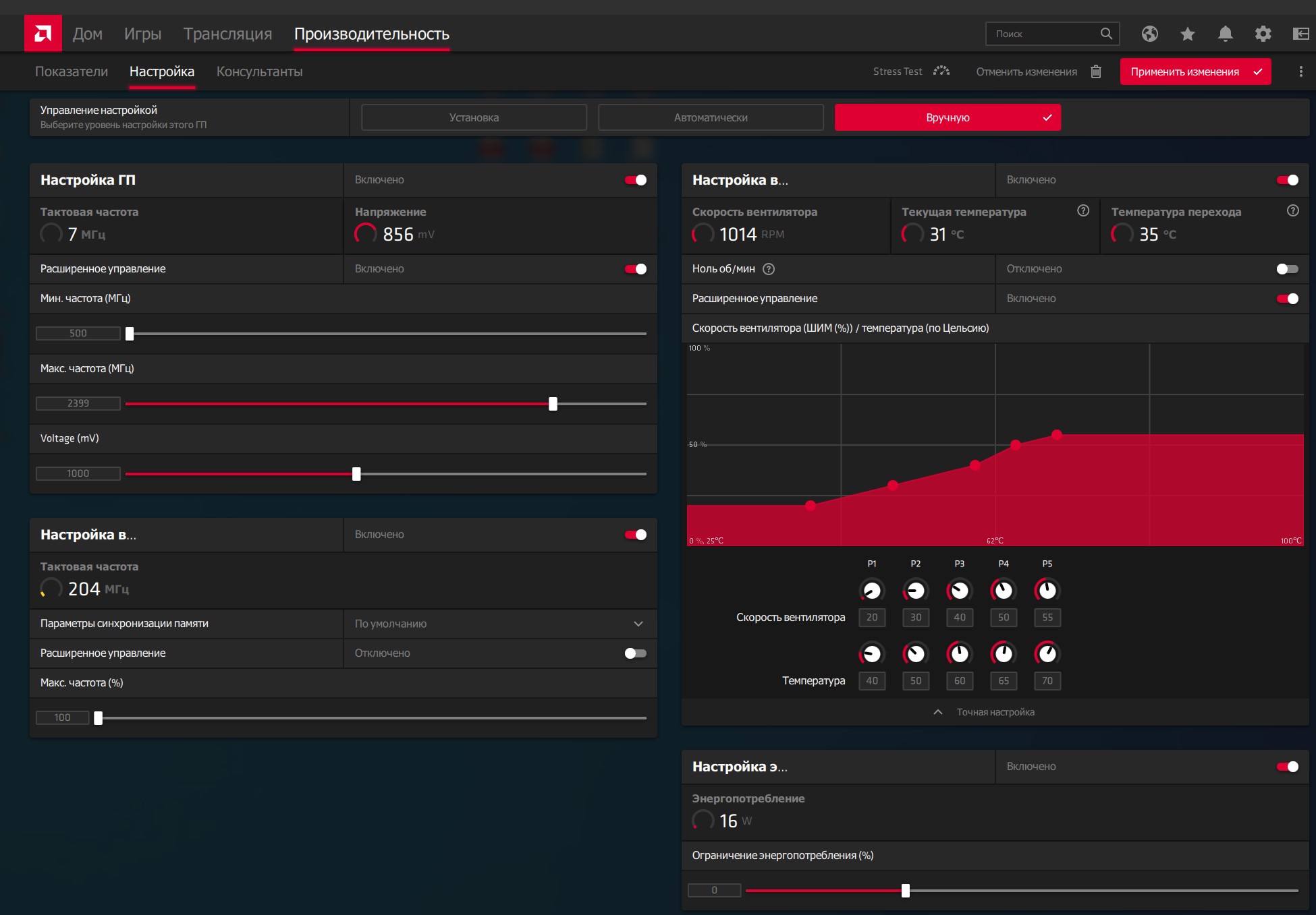 Вчера вечером купил Asrock rx 6800 xt Taichi X поставил предварительно такие настройки, подскажите что можно улучшить