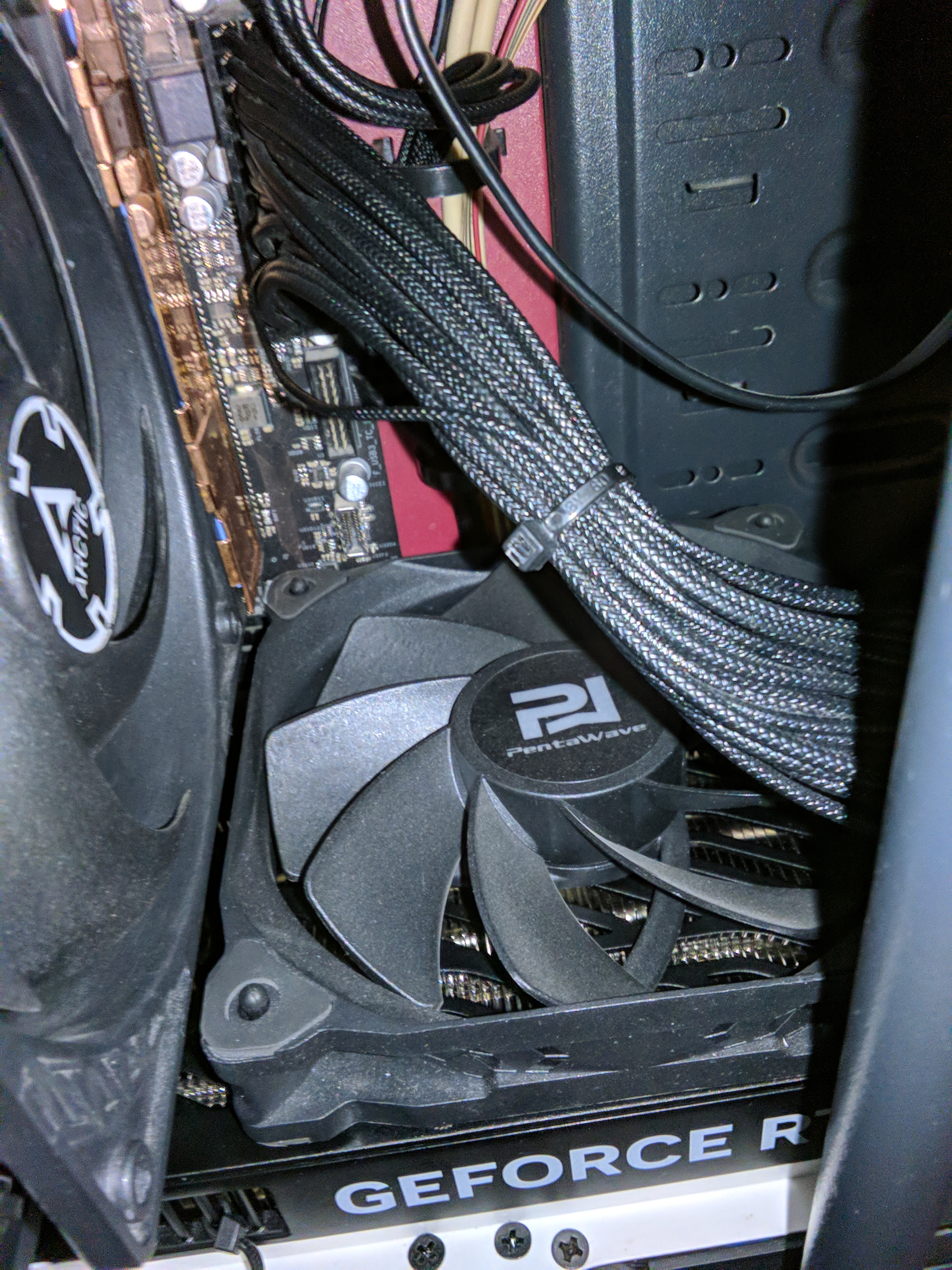 Поменял на своей palit gaming pro арктики p12 на Thermalright TL-C12-Pro, температуры конечно упали, стало на TL-C12 Pro в фурмарке при 400ват 67-68гр на 1200об, но и шум конечно вырос по сравнению с арткиками, вообщем я наконец-то доволен.
