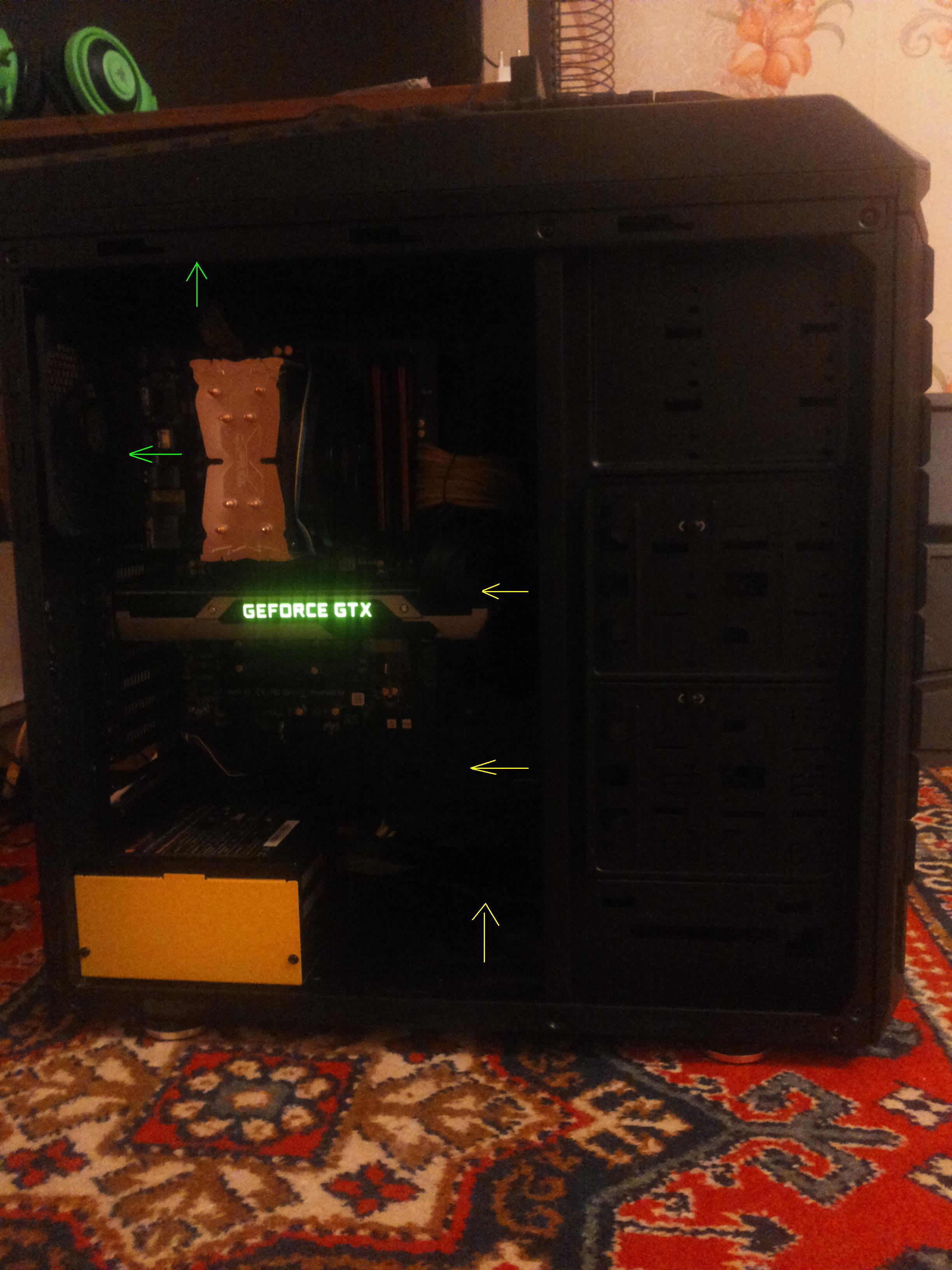 Всем доброго дня, подскажите комрады на моей GTX 980 (Palit реф.) зашит БИОС от EVGA карты, отсюда вижу частоту в бусте 1480 и частоту памяти 7800 это всё конечно здорово , но беспокоит одно напругу GPU-Z кажет 1,275 пошаманил обороты вентиля в MSI AB в Ведьмаке 3 карта греется не выше 79 градусов, с учётом того, что и кейс у меня просторный + море вентилей. Подумываю на боковую стенку 120 мм на против карты прикрутить, только не знаю на вдув или выдув ставить да и будет ли профит??? Короче говоря, кому не трудно поясните как мне быть с вентилем и боятся ли 1,275 напряжения на карту.