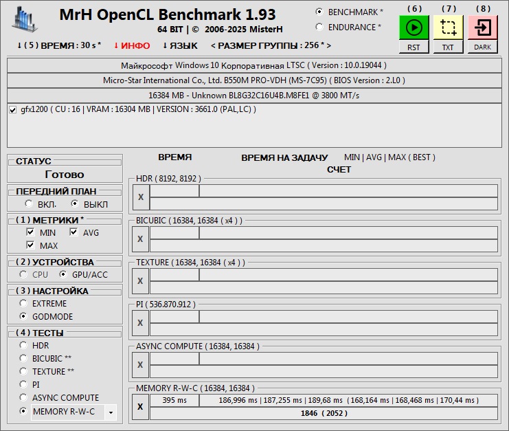 Подозрительно низкая псп. Непонятно почему она падает после первой итерации. Частота памяти не падает? А если попробовать ее разогнать хотя бы на пару МГц?