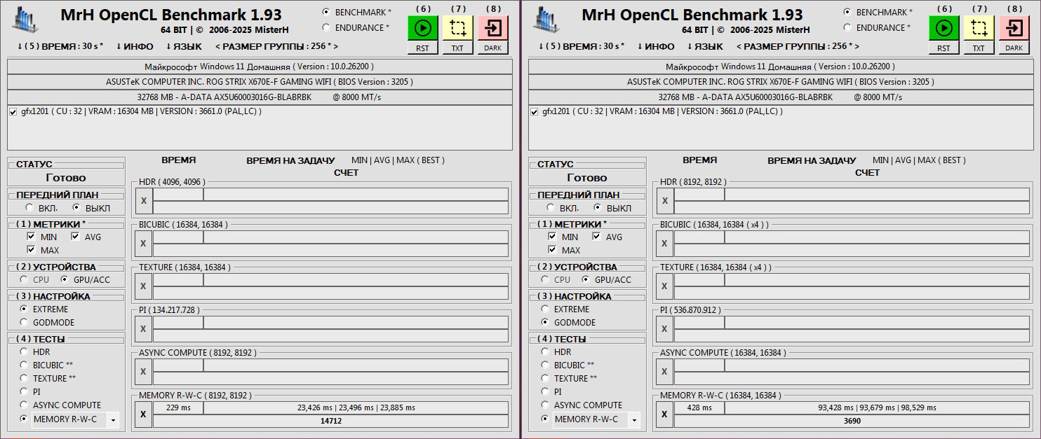 В этом конкретно случае, к сожалению, проблема с QC на стороне Хфх (черт дернул с ними связаться) - или какая-то банка битая (в смысле дефектная) или я коцнул (что врядли, т.к. на воздухе такая же байда была). Мне вот интересно latency сравнить, можешь прогнать в стоке MrH "R-W-C", в "Extreme" и в "GodMode" (пару минут на всё про всё)?