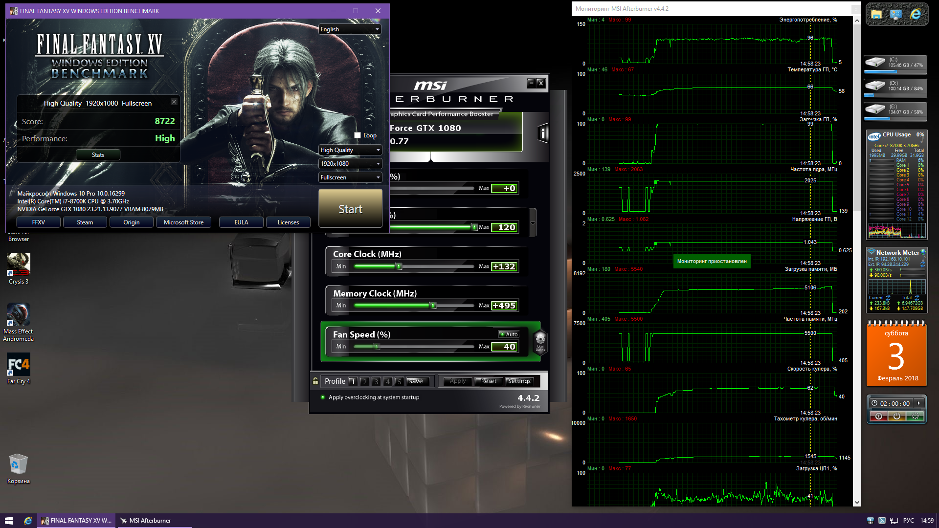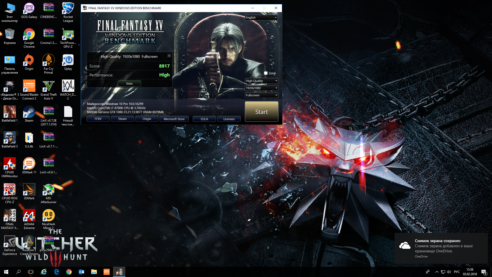 Выставил разрешение монитора 1920-1080 вместо родных 2560-1440, прогнал еще раз, на 2100/12000Мгц. Вот результат. Если еще выгрузить мониторинг рива тюнер и Экспириенс еще больше будет.