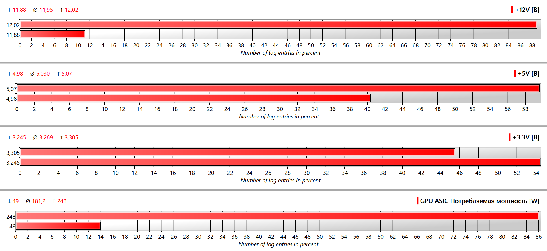 ну вроде не сильные просадки на 250вт, я в анализ чужого железа не оч. Напомню только что опрос hwinfo в дефолте 2 сек, и легко мог пропустить скачки показаний (spikes) за ваши 18 мин лога :