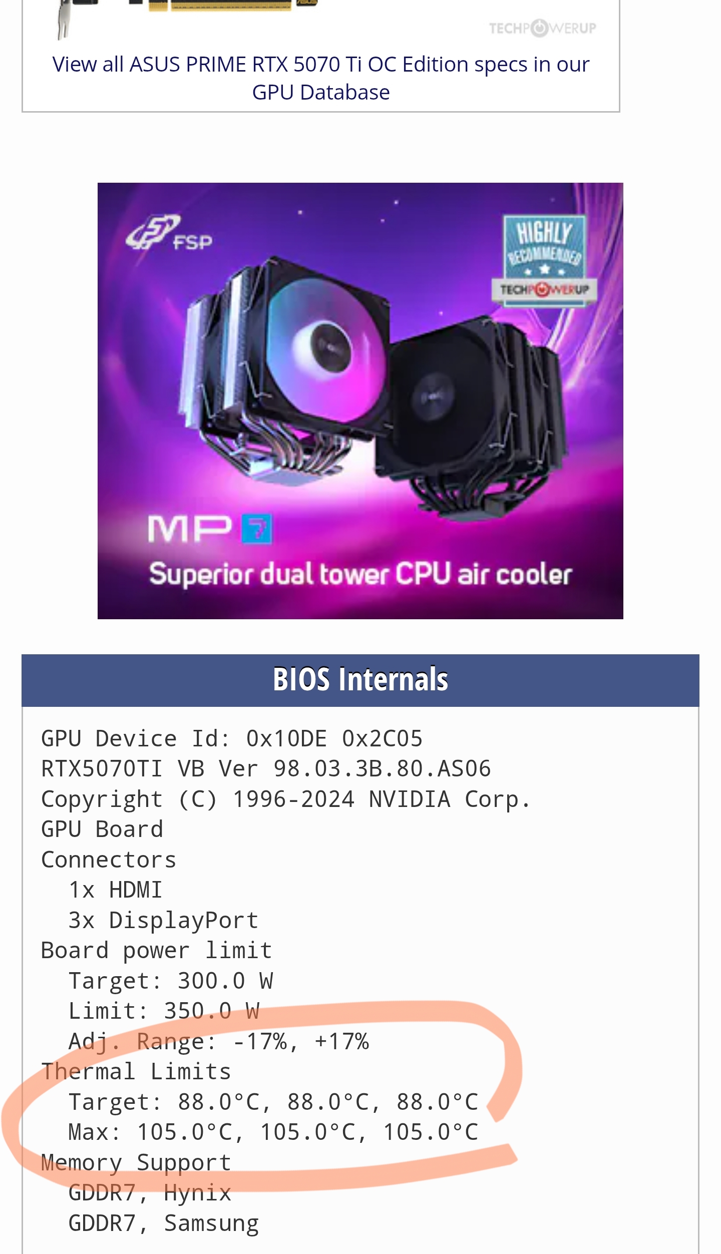 Это Стрикс похоже. Я по названию искал и там выдало Астрал почему-то. На странице биоса в самом низу Стрикс написано, от автора видимо. https://www.techpowerup.com/vgabios/276262/276262 350w у неё. Я настроил курву от 50% через Fan Control и вот щас играю минут 40 уже и чип до 70с, память тоже.