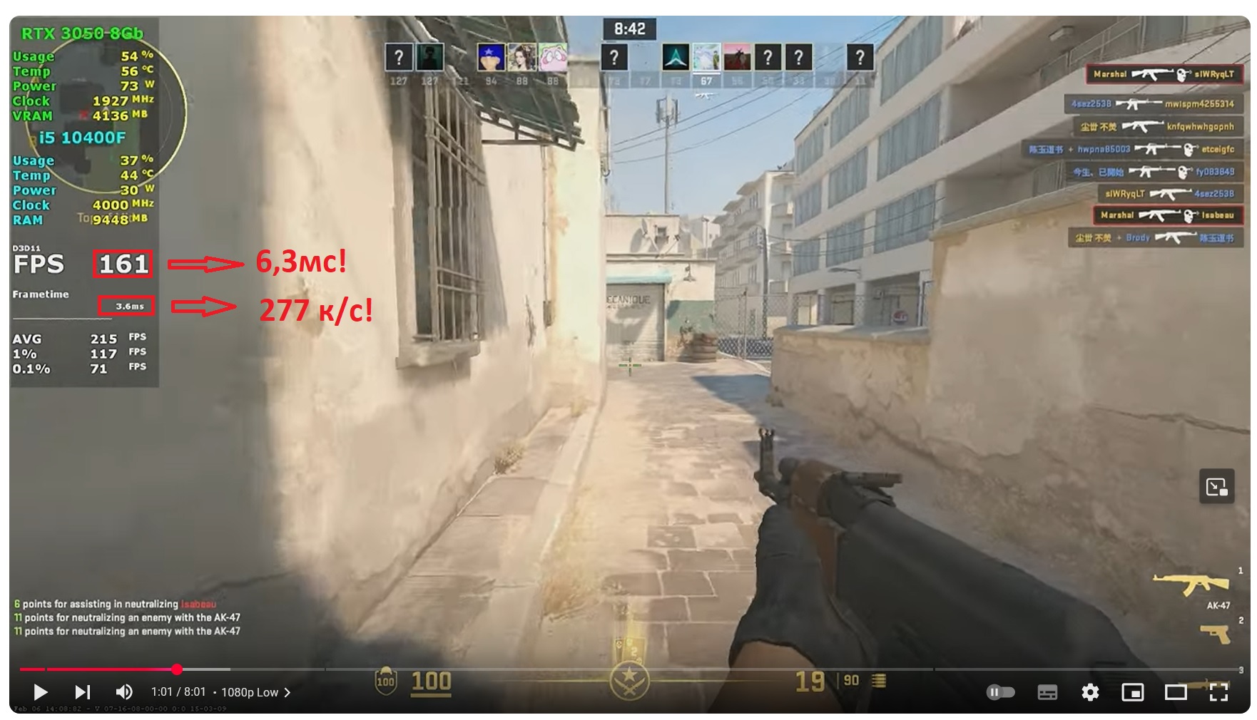 Беда в том что почувствовать геймплей по фрейм тайму с видео невозможно. И 120 фпс ваши и его могут ощущаться кардинального по разному. Мышь очень чувствительна к микропараметрам особенно в КС. Например мониторинг АБ варзоны показывает 7-9 МС. Но каждый сдвиг мышки это лаг. Она двигается рывками на определенный градус.