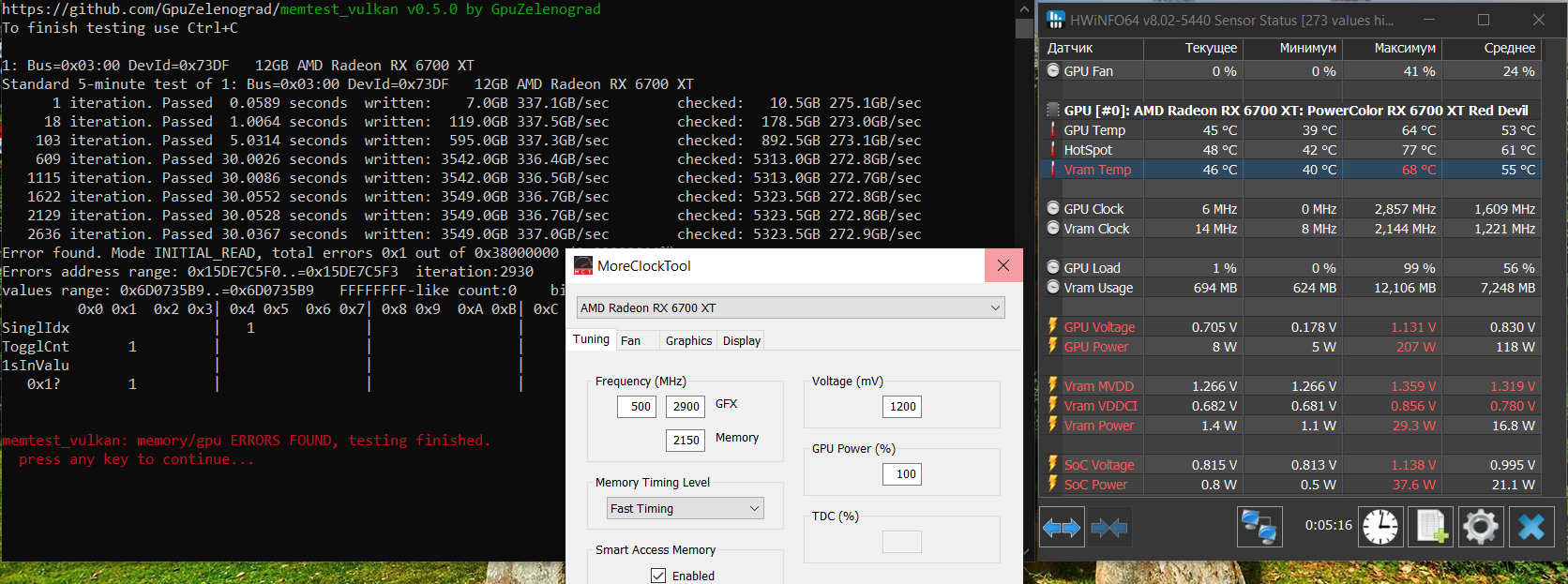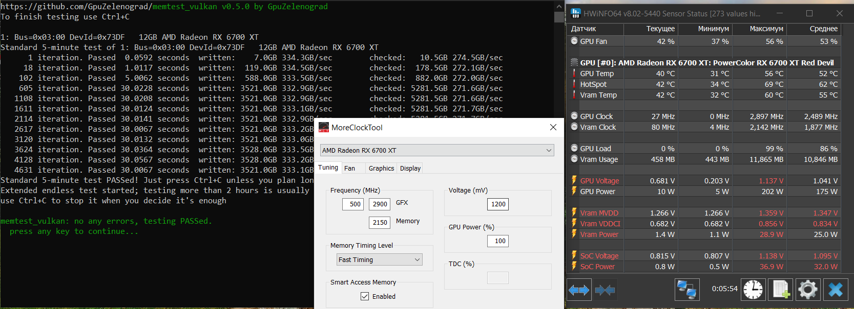 - Установить последнюю версию Windows 10 1903/1909. Как это сделать можно прочитать здесь https://www.microsoft.com/ru-ru/softwar ... /windows10. - Осуществить подключение питания карты рекомендуется двумя отдельными кабелями во избежание возможных проблем с блоком питания, с самими кабелями и пиковым потреблением. - Использовать блок питания рекомендуемой производителем карты мощности. - Необходимо учитывать, что некоторые запущенные программы по мониторингу (afterburner, gpu-z и подобные) могут вызывать различного рода проблемы в работе карты и поведения карты в игре (статтеры, снижение fps, сбой в работе вентиляторов). В некоторых случаях были проблемы c оверлеем Adrenaline. (данная рекомендация может считаться устаревшей, в случае использования последних версий драйверов и обновлений Windows). - Разгон оперативной памяти может вызывать статтеры, вылеты или черные/синие экраны, если он был произведен без должного тестирования памяти на стабильность. Поэтому перед проверкой карты и ее разгонного потенциала рекомендуется сбросить разгон процессора и памяти. - Порядок установки новой карты: установить новую ОС -> установить драйвера чипсета -> установить прочие драйвера -> установить драйвер видеокарты. - Рекомендуется переустанавливать драйвер после переключения БИОСа на видеокарте, чтобы он (драйвер) корректно интерпретировал новые настройки (эта рекомендация Sapphire, написанная на бумажке, которая вложена в коробку с видеокартой). - Рекомендуется заполнить табличку OC potential of RX 6000 series - Проверить карту стресс тестами и играми (в том числе при при разгоне) в стоке со сбросом любого разгона (в т.ч. памяти и процессора): 3DMark Time Spy, тест на стабильность, 20 прогонов - Одна из рекомендаций по отлову черных экранов и проверки системы на стабильность: LinX (задачи 40000) + Kombustor (1080р), вместе включаем и смотрим приблизительно полтора часа. Предварительно выкрутить вентиляторы карты и системы на максимум во избежание перегрева.