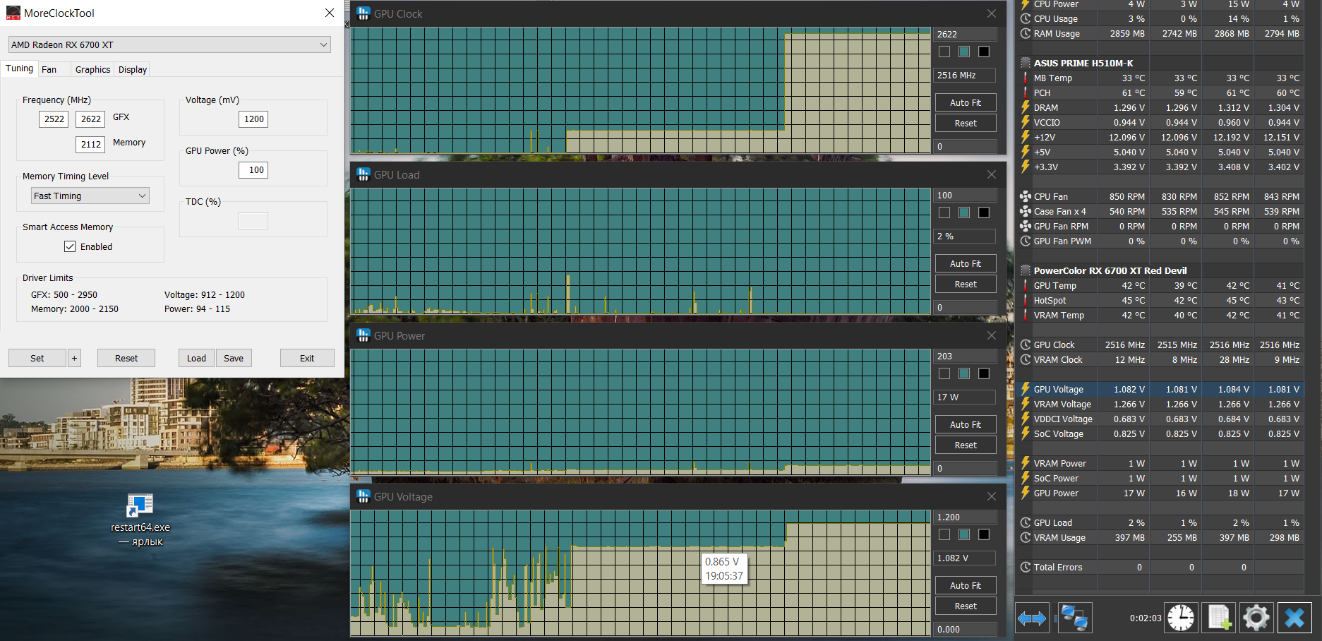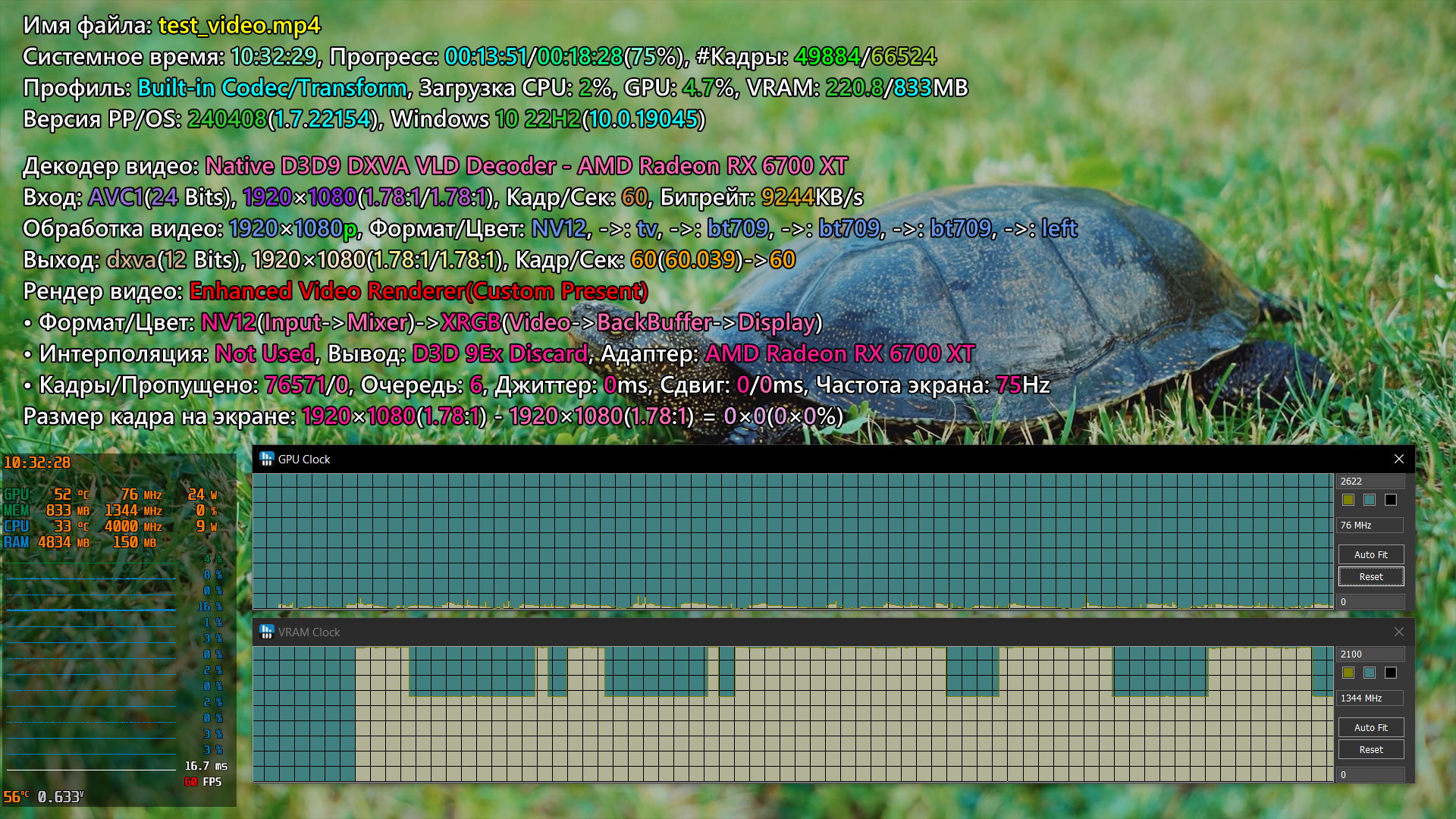 В MPOGPUFIX активировал MPO fix, TDR fix, HAGS fix MoreClockTool min частота 2522