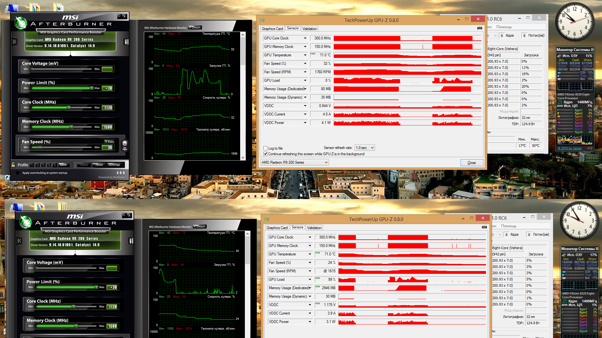 так у меня к тебе и вопрос был по этому поводу, под нагрузкой ПО с мониторингом по гпу показывает 0,865V.....ну этого же не может быть) толи не корректно ПО определяет мою вк толи хз что... и напруга не меняется через tri-xx, кручу ползунок - он прыгает после кнопки "применить" либо в стоковое значение либо на максималку 1,2 ,карата греется больше, но мониторинг показывает 0.865V всегда, толком не разогнать не могу нихрена..... что удалось без повышения напруги 1100\1690