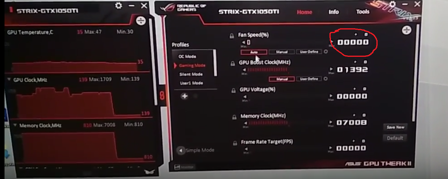 Затем, что лазая по сайтам у видюхи температура 25*, и шум ее винта мне нафиг не нужен) В GPU Tweak II или MSI Afteburner можно выставить кривую скорости вращения, зависящую от температуры. Запустил игру, видюха начала пахать, вент включился. Сейчас так у меня настроен кулер цп. До определенной темп выключен, далее включается.