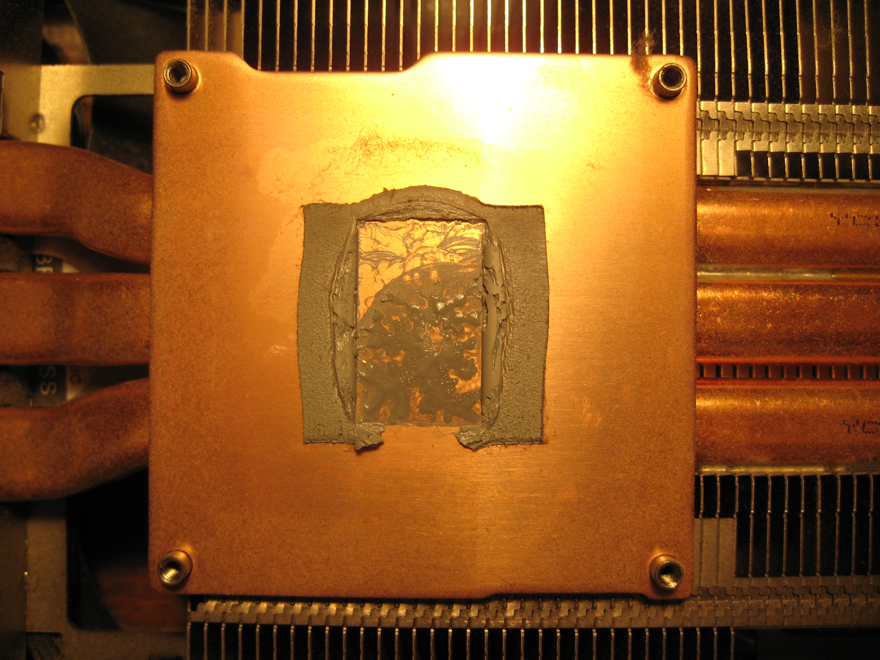 Отпечаток с завода на EVGA GeForce GTX 960 SSC GAMING ACX 2.0+ Part Number: 02G-P4-2966-KR. Термопаста не превратилась в камень, видеокарта покупалась в феврале 2015, работала на автоматическом режиме управления вентиляторами. Поменял термопасту на Arctic Cooling MX-4