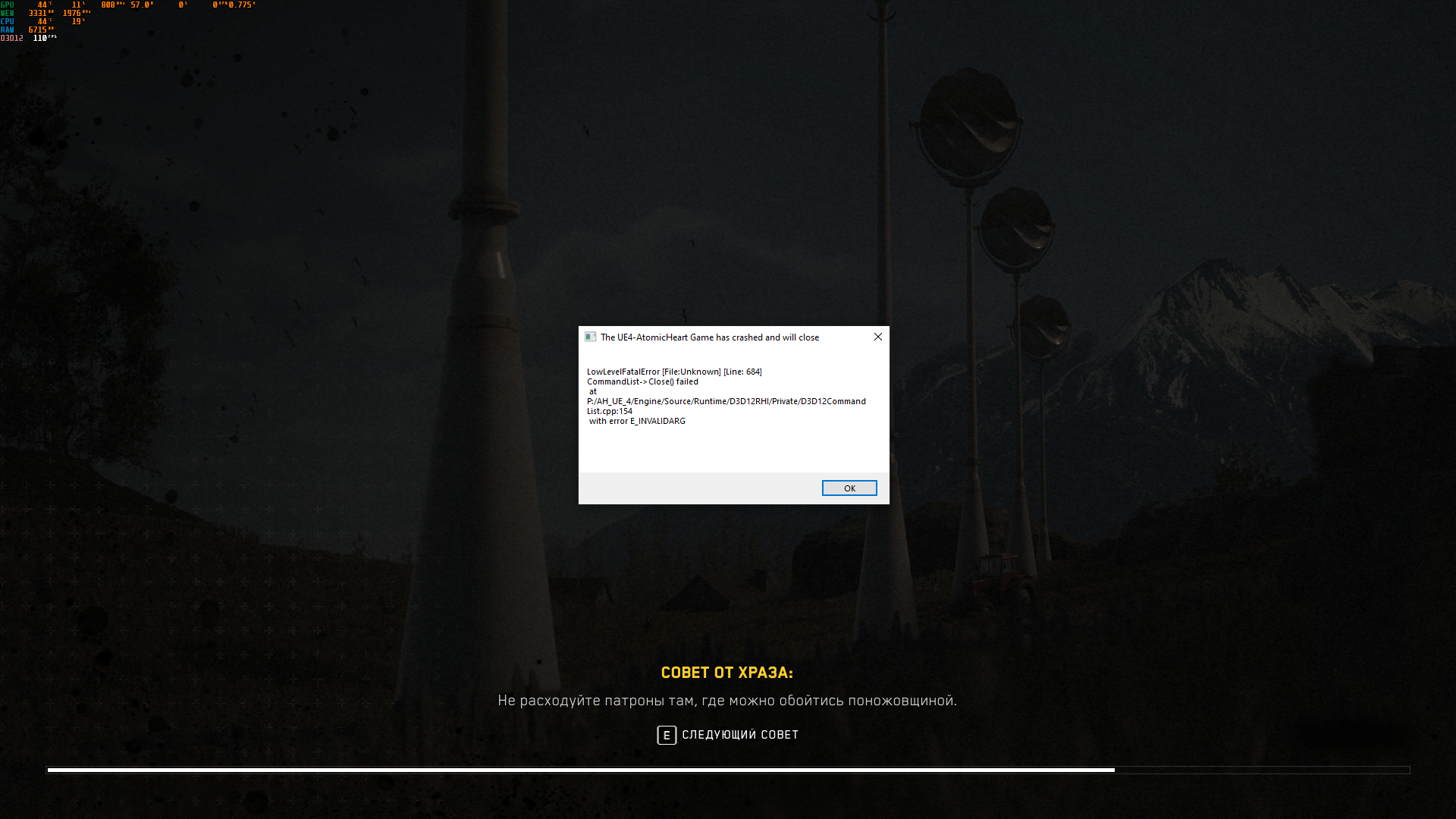 Начались первые приключения! Atomic Heart перестал запускаться с ДХ12