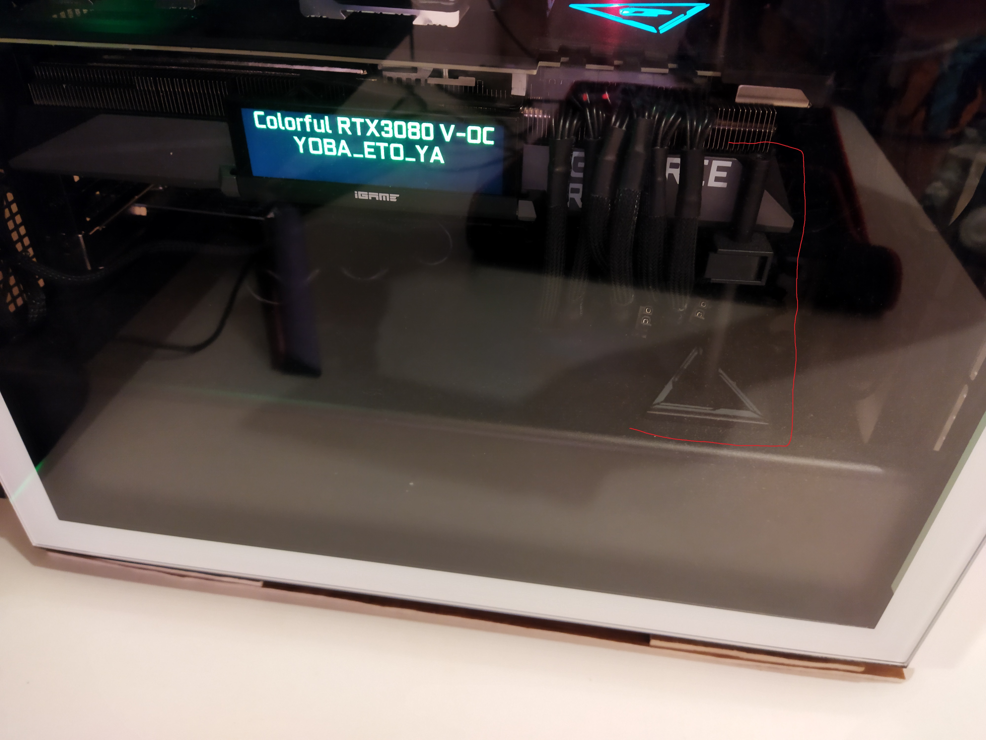 А проблема то в чем. У меня тоже Tuf 3080Ti. Поставил подпорку в правый ближний угол. Текстолит не гнет. И это самое главное.