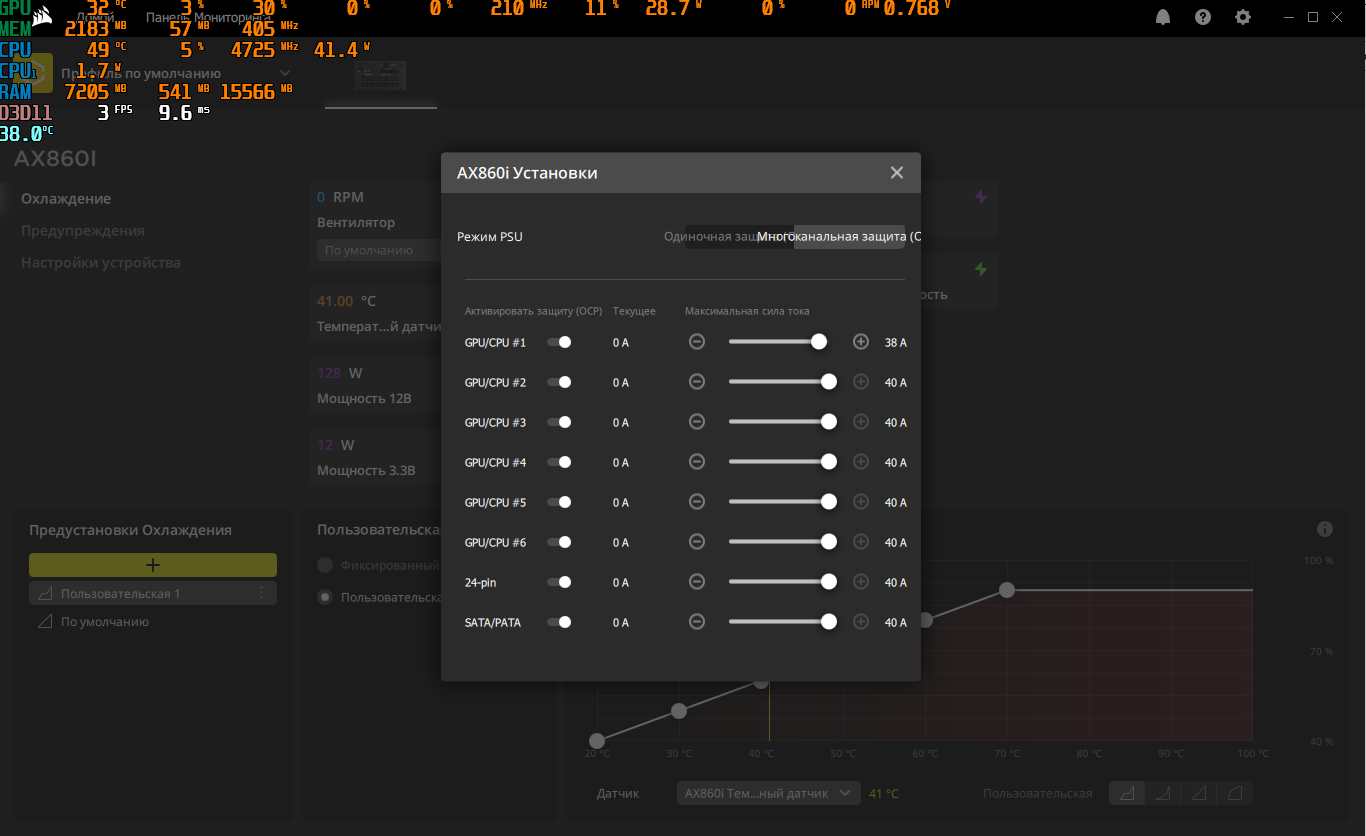 насчет БП, может ли дать уменьшие просадок при нагрузке на карту отключение многоканальной защиты (отдельно на каждый разъем) по току и выставление одиночной защиты (блок с "цифровым управлением") В старой версии программы, вроде, помню можно было объединять или разделять порты под питание гпу и ограничивать его сейчас по умолчанию стоит многоканальная защита, в старой версии ПО по умолчанию был режим одиночной защиты (когда я его покупал под позапрошлую видеокарту в лице 7970)