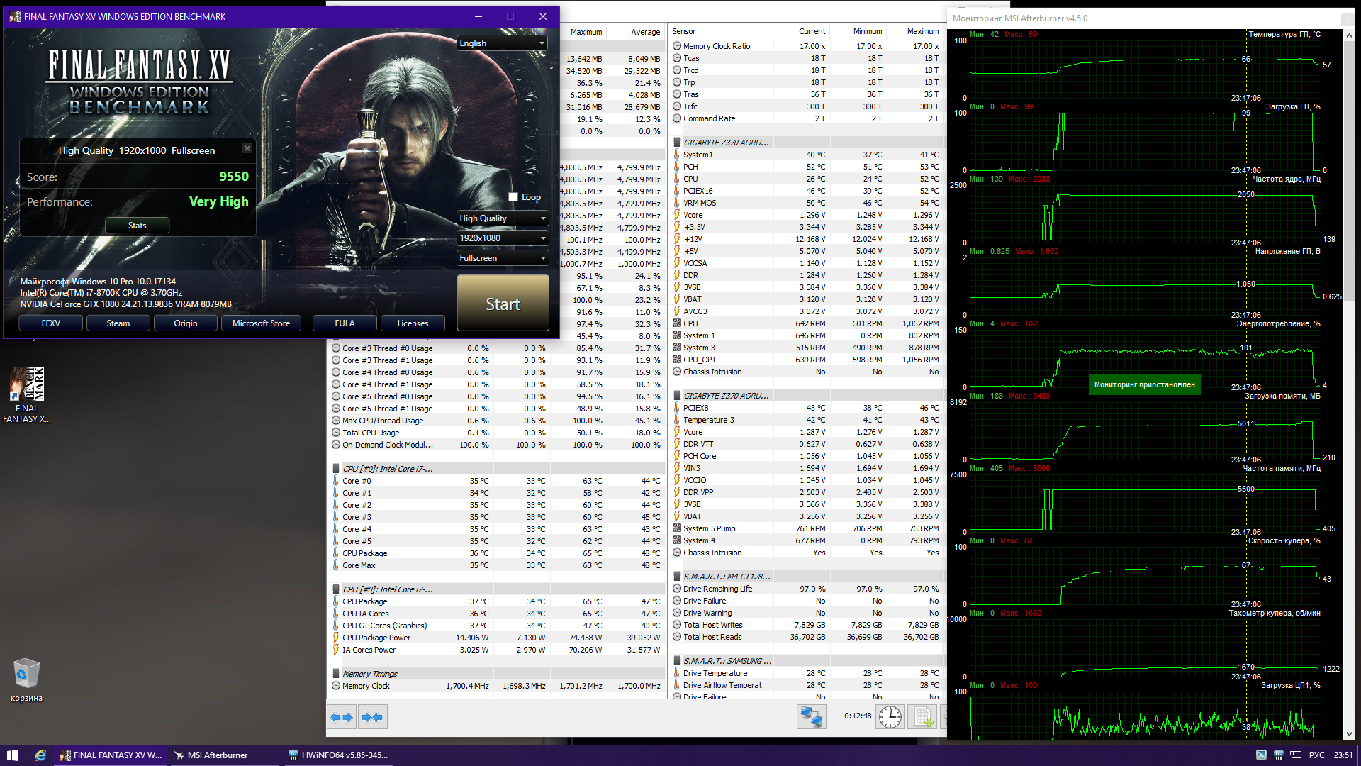 Лучше попробуй прогони бенч ФФ при частоте проца 3.8 и потом ещё память попробуй до 11600 скрутить. Мне интересно, у меня только в проц упирается или видеопамять тоже так сильно решает в ФФ? По ядрам на 2152 гонял, как и у тебя. И у тебя видуху на 100% грузит бенчем?
