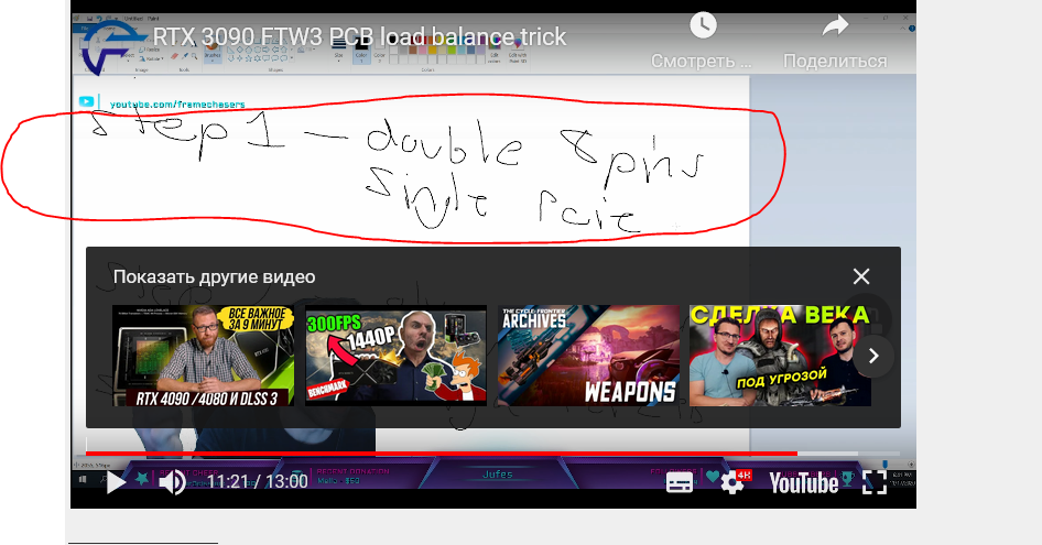 Народ, лазил тут по закрепленным ссылкам, вот в этом посте Всё о NVIDIA GeForce RTX 3080 | RTX 3080 Ti | RTX 3090 (GA102 Ampere 8nm) #17192499 увидел видео... не заметил как на него тыкнул и пошел читать рабочую почту, потом увидел что на карту есть легкая нагрузка, понял что работает ютуб... остановился на вот таком интересном кадре