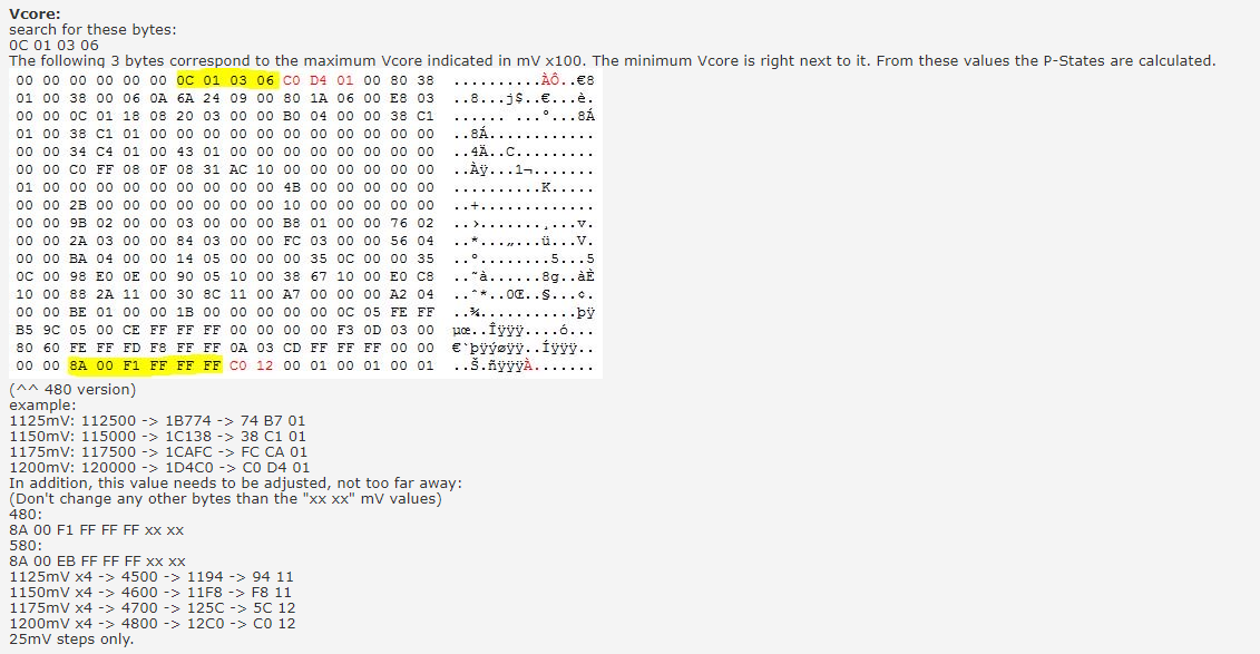 У меня на 588 после редактирования этих байтов сместился максимальный state на значение, которое я указал и все остальные просчитались относительно него. Я ставил 1075 (с шагом 25 потому что), у меня как раз вольтаж держался на уровне 1050-1060. Я целую неделю мониторил, так максимальные скачки были как раз до 1075. Вообще изначально мы это делаем, чтобы карта работала как надо на Auto Auto значениях, так как вручную я и так могу указать что мне надо.