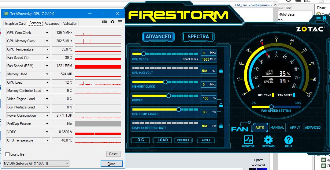 Ребят тут есть владельцы ZOTAC GeForce GTX 1070 Ti AMP Extreme подскажите в простое должны вентили останавливатся или нет а то у меня они постоянно крутятся? Дрова стоят и режим авто в профиле.