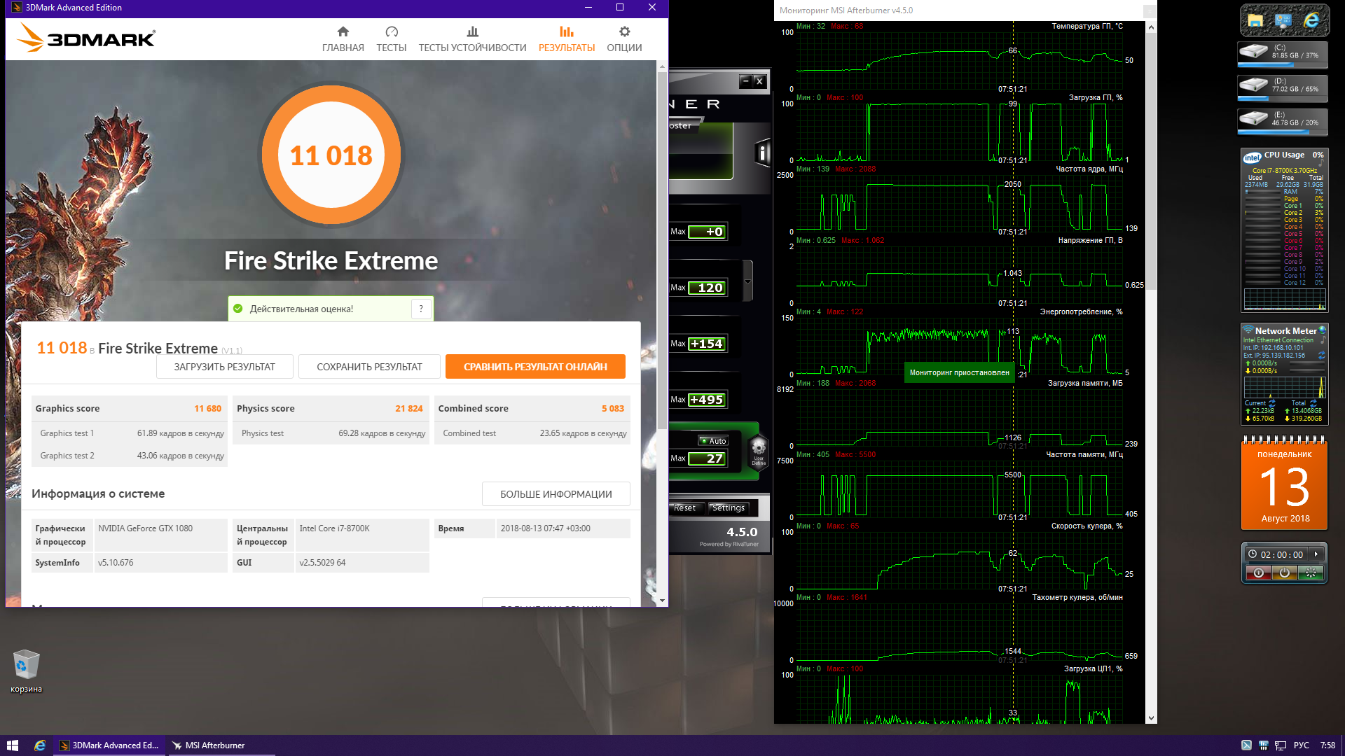 Товарищи, FSE Graphics score 11 804. Это хороший результат для 1080 печи нереференса от Палита в 24/7 разгоне? Какие сейчас на последних драйверах нормальные результаты?