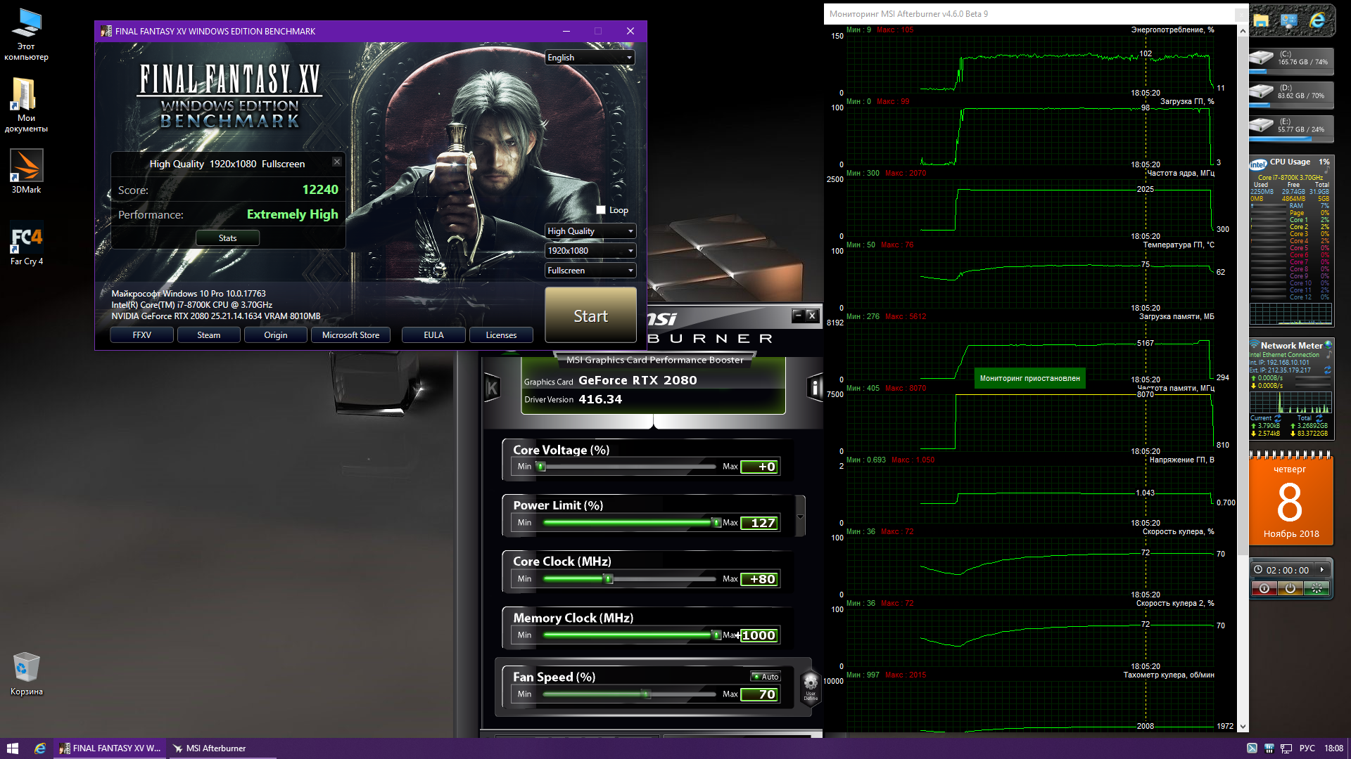 Всех приветствую, приобрел evga 2080 ti xc gaming вместе с вб от них же hydro copper, что хорошо так это то, что родной бэкплейт надевается вместе с водоблоком, хотя сам вб конечно дороговат. Сегодня наконец собрал все это дело, пришлось пересобирать три раза, так как в комплекте идет брекет для чипа, который фиг поймешь какой стороной ставить. Чем теперь карту протестить? Старые игры ее лаже на 50% не грузят, попробовал unigine superposition температура в пике 45 градусов, частота прыгает 1950-1960, в пике 1980, ползунок двигается на 130%, по частотам без разгона я так понимаю все нормально?