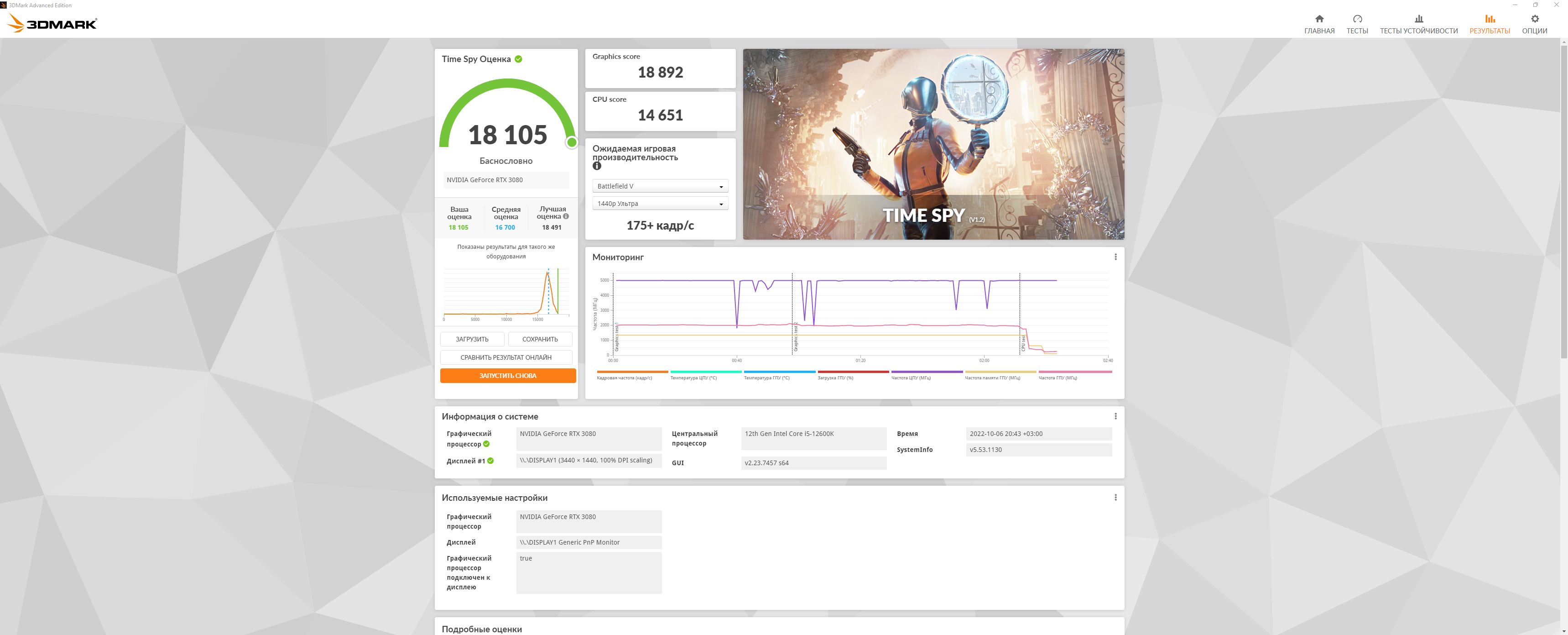 +170Мгц по чипу, не знаю сколько там было и +1200Мгц по памяти, что должно ровняться 21400Мгц. Пробовал 21600Мгц, результат падает по очкам бенча. Я так понял 21400Мгц этот максимум разгона по памяти моей видеокарты.