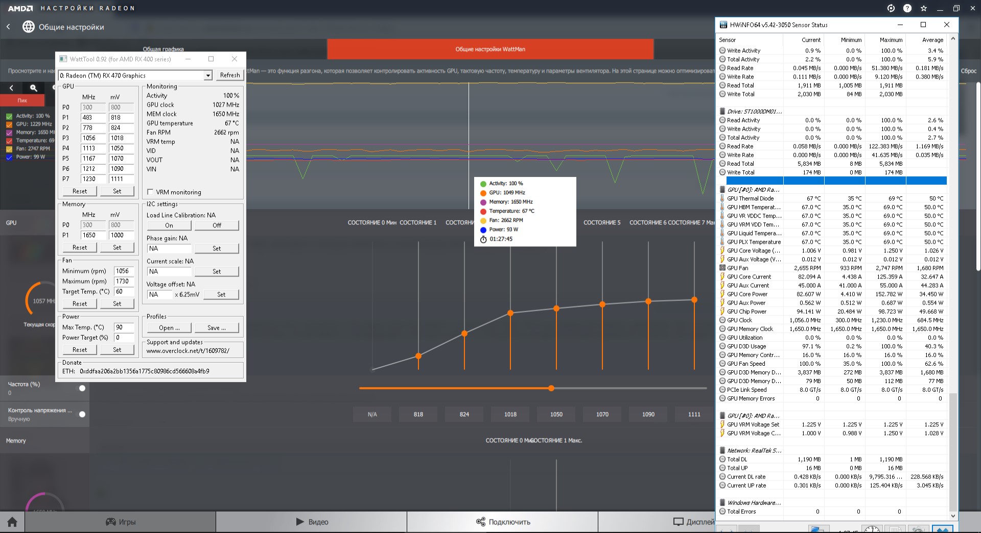 Q: Какое напряжение на чипе и контроллере памяти(КП) должны быть? A: Напряжение на чипе должно быть не меньше напряжения на контроллере памяти. Ваттман (и прочие утилиты) регулирует напряжение на КП, хотя написано что это напряжение на памяти!