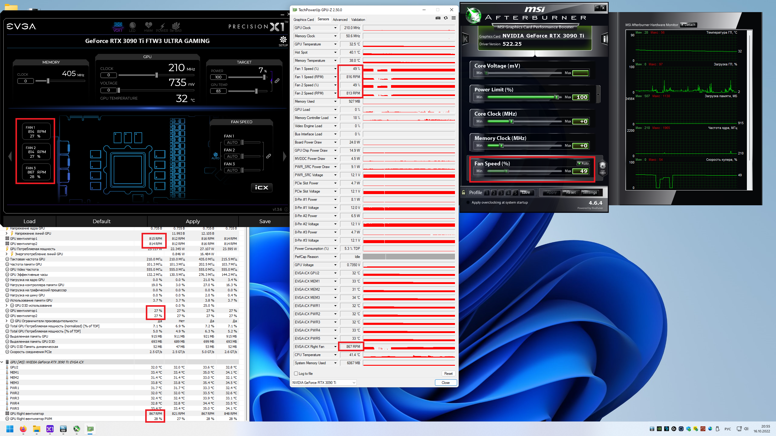 Вот тут в видео https://youtu.be/MdfKdEQeCpU?t=292 Человек рассказывает о том что на евга управление вертушками идет через микро контроллер дополнительный, на который я все и веню, разность % мощности и остальные свистопляски. Все дело в нем ИМХО. Вопрос к форумчанам есть ли у кого такая же карта как и у меня, как у вас все работает? Нет ли обозначенных проблем, очень бы хотелось пообщаться с другим владельцем такой же карты, и понять это косяк моего образца или это врожденная болячка. Просто я хз че делать или идти ее здавать и менять, или это у всех них так и надо смириться.