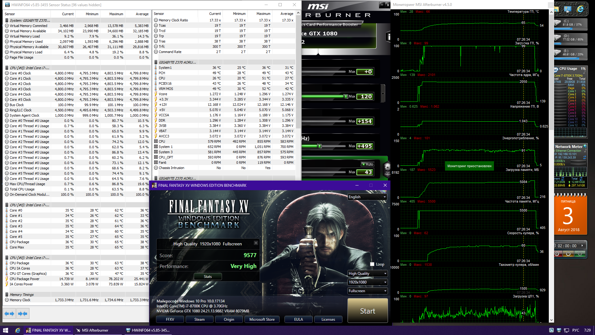 Ryazancev Я искал владельцев потому что мне кажется ,что крутилки стали шуметь сильно, карта с июня 17 года у меня. Просто комп раньше стоял в другом помещении, может быть тут акустика такая, что слышен сильно этот мерзкий звук, не могу объективно судить. Так вот хотел обсудить, может стоит залезть подмаслить вентили или не стоит их трогать. Сами температуры не беспокоят, только шум, я обычно принудительно ставлю на 35% вентили. Кривую самому можно конечно поставить, но у зотака неприятный момент - старт-стопы вентилей постоянные в районе 30%, т.е. ниже они не умеют и отключаются. Ну и тут же стартуют на 30+, поэтому я обычно сижу с 35% фикс.