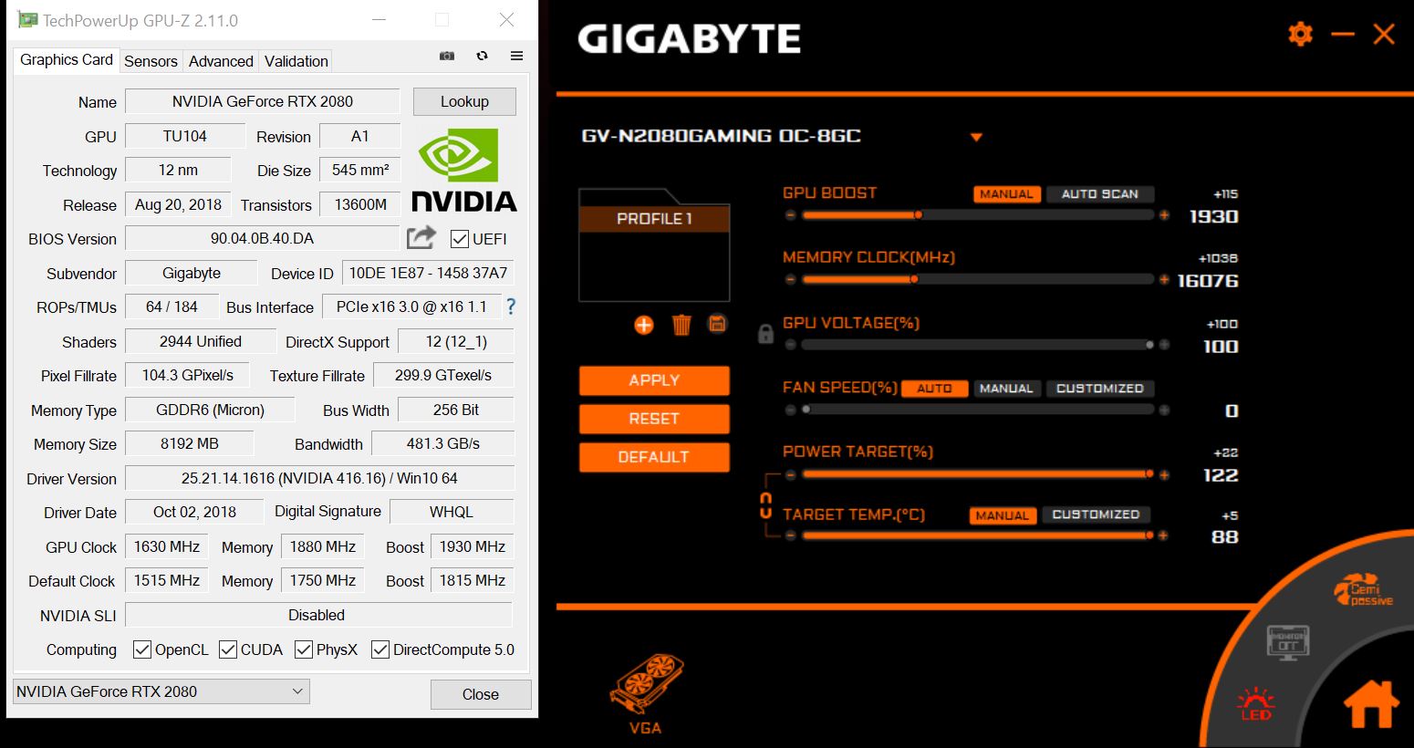 после 2 часов игры в вар тандер со сглаживанием ssaa 4x в профильном корпусе с парой вентилей на вдув и одним на выдув RTX 2080 Gaming X Trio разогрелась до 76 градусов, это все еще без разгона (частота ядра была почти все время 1905, и порой просаживалась до 1890)