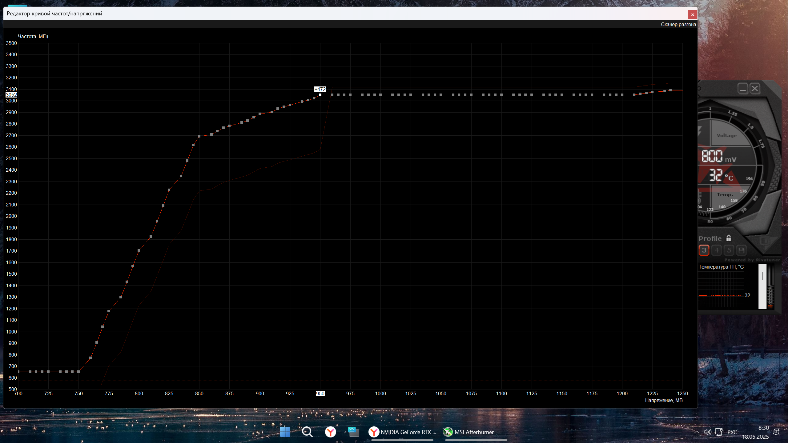 tolikmixx На 5000 картах если делать по классике, то частоты дропаются. Изменился принцип работы буста у карт, об этом на форуме создатель Афтербернера писал.