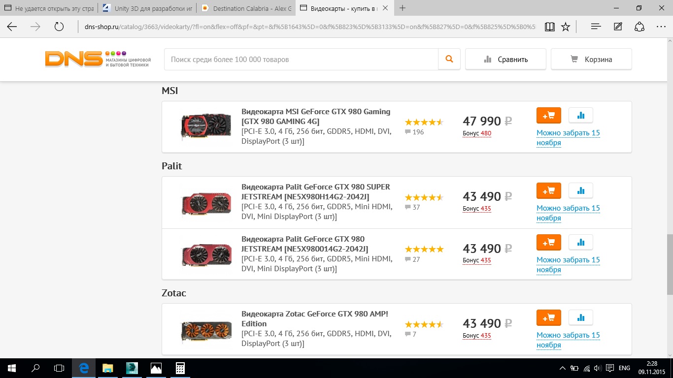 Хотел брать за 44k не в ДНС, т.к. в ДНС та же мсай гейминг 980 стоила 46990k. Но 22 (или 23) октября увидел снижение цен на весь модельный ряд 980. И доходило до того, что некоторые 980 стали стоить дешевле 970 того же производителя. На следующий день я и забрал за 35750. А еще на следующий день цены стали как на скрине выше.