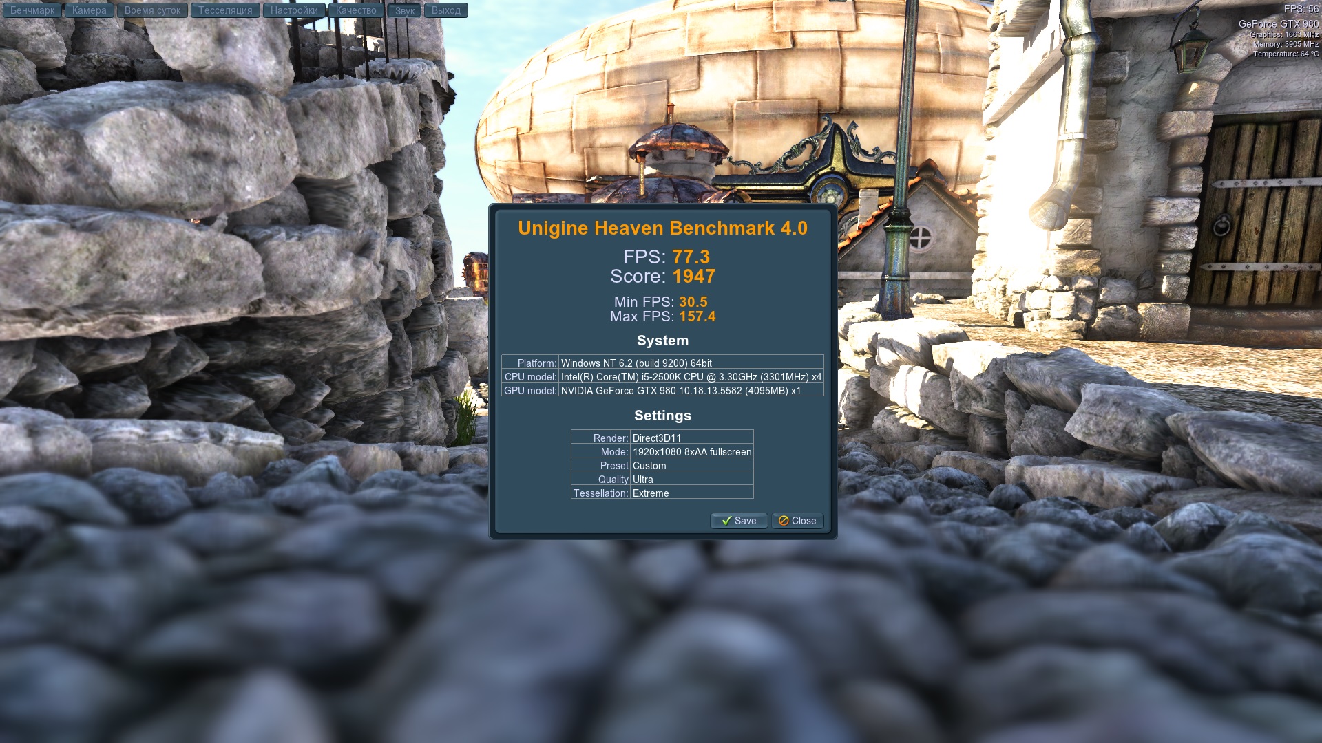 Вот, я тестировал в Fritzz 4 потока поставил, чтобы не было недозагрузки в хеване. 4790K 1,30V, GTX 780 1350@7000 1,30V Даже две 970 в стоке не догонят