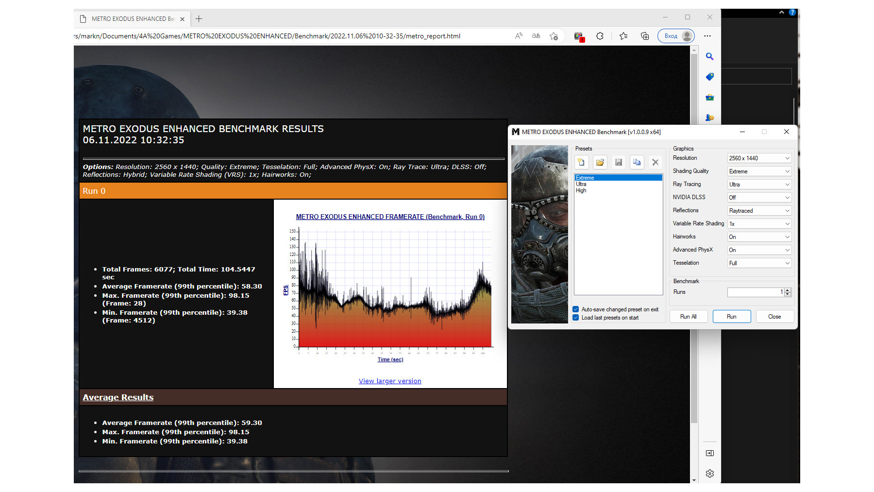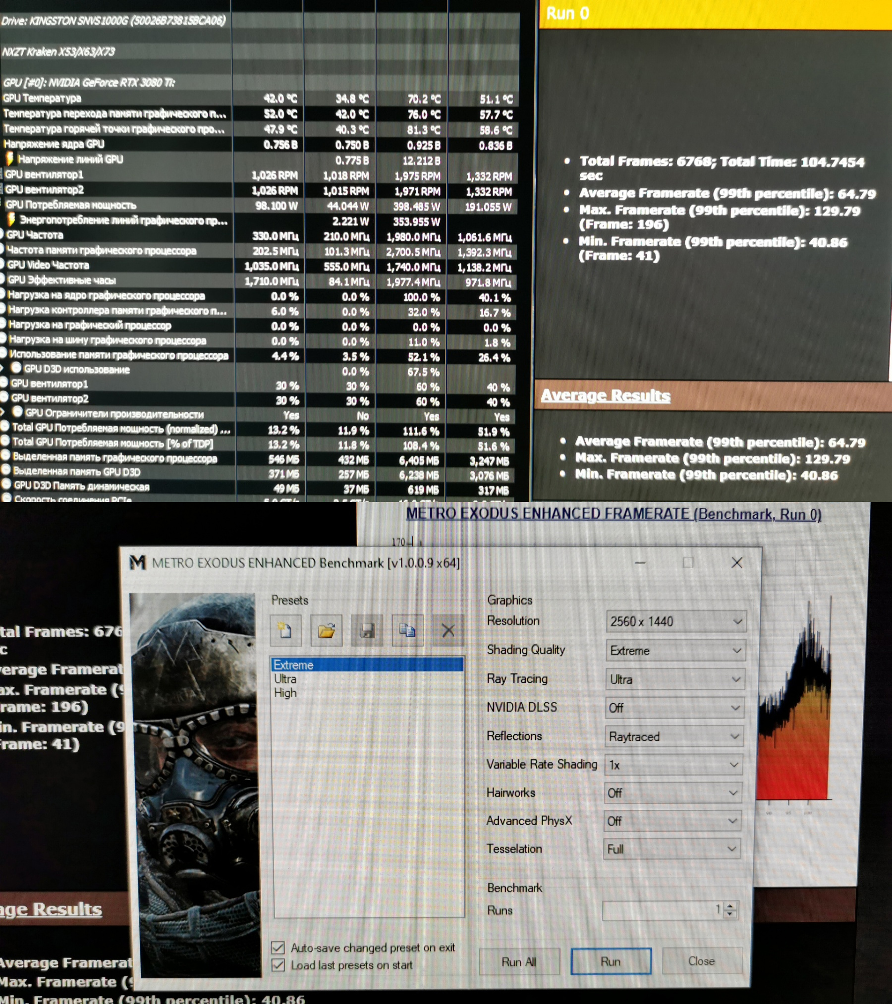 прогнал у себя, что с двумя галками что без, разницы нет, 66.2 фпс выдает на Rog 3080ti, 1935mhz 950mv 9800mhz mem