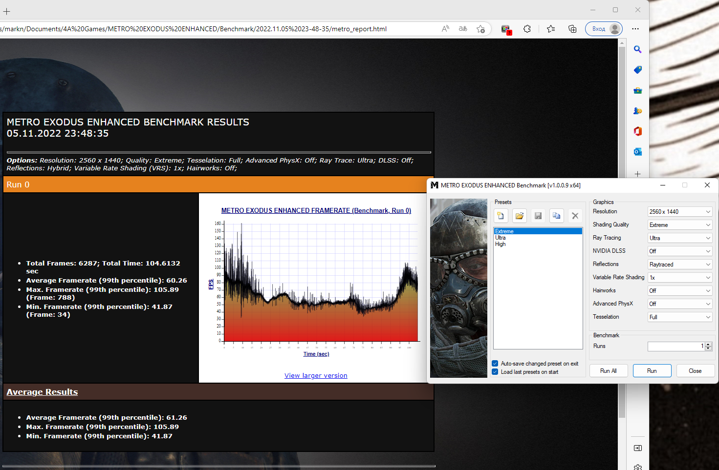 Метро эксодус. бенч профиль экстрим, 2 к, лучи на максимум. У него на стоке 64 фпс. У меня на стоке 57 фпс. В разгоне до 2000 у меня 61 фпс, в даунвольте до 1800 0,8 - 55 фпс. Единственно у него 5800 в фиксе 4.7, у меня 12400 в разгоне до 5000. Насколько еще это влияет я не знаю.