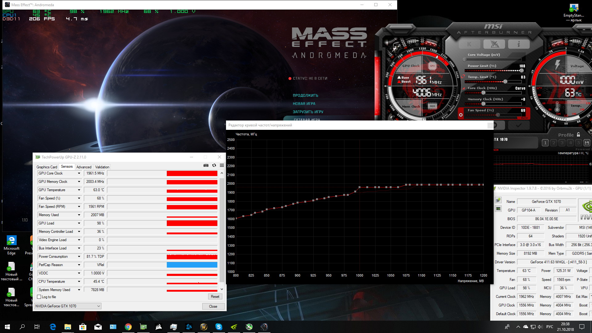 Доброго времени суток. Пытался произвести андервольт 1080 геймрок. Как первую цель установил 1975 при 0,975. Точки от 0,981 до 1,062 опустил с запасом. Уже на первый взгляд 1,062 встала не как следует. Возможно стоит следующую после нее точку тоже опустить? При запуске рендер теста gpu-z частота стартовала с 2,05 при 1,062 и при прогреве до околоигровых 62 градусов упала до почти целевых. Подскажите пожалуйста насчет редактуры кривой, возможно я допустил какие-нибудь грубые ошибки.