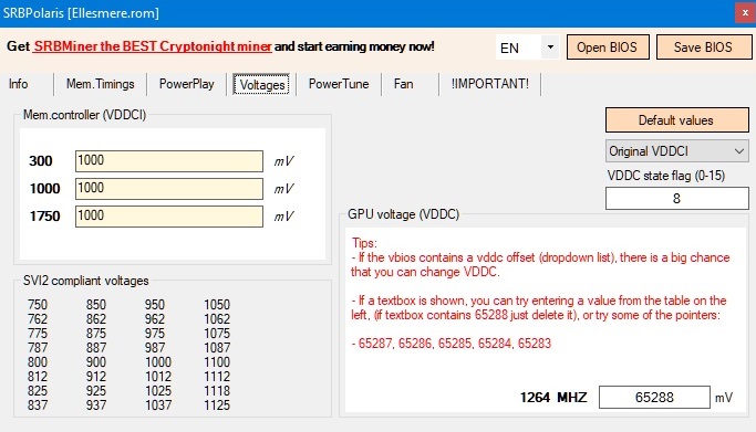 Печалька, а я то думаю что не так делаю мозги себе компасирую прошыааю по 10 раз на день Вы не в курсе в стоке прописано напряжение на ядро 65288 что ето за дичь, менял на 65286 и пытался отследить через дрова амд напряжение только выросло.