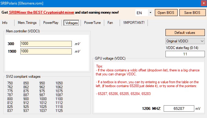но здесь этого нет. (макс вольтаж 1.175). Поэтому не у всех работает редактирование в том числе через HEX, биосы разные для разных 470/570/580