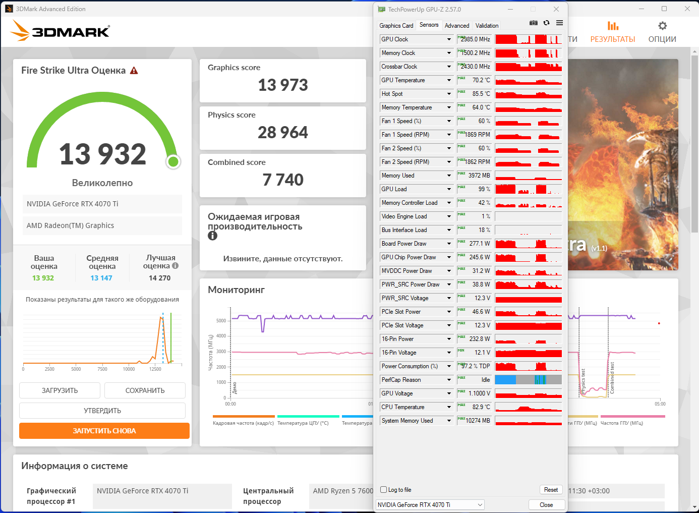 Норм у тебя прогрелась карта. И это при 277 Вт потребления. А что будет при 300+ Вт? Я бы лучше сделал андервольт на твоем месте и не мучал бы железку, разницы в фпс без мониторинга все равно не увидишь:
