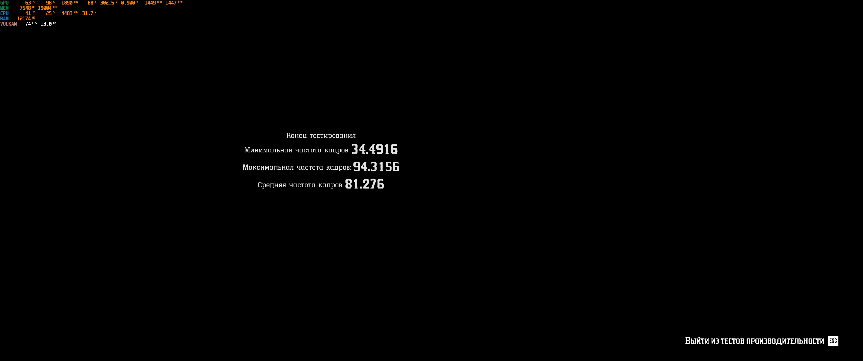IO_OI прогнал я бенч на твоих настройках качество физики воды - линия на 1 шаг назад резкость сглаживания TAA - не пошаговая настройка, поставил линию на глаз как у тебя. размытие в движении у тебя - выкл