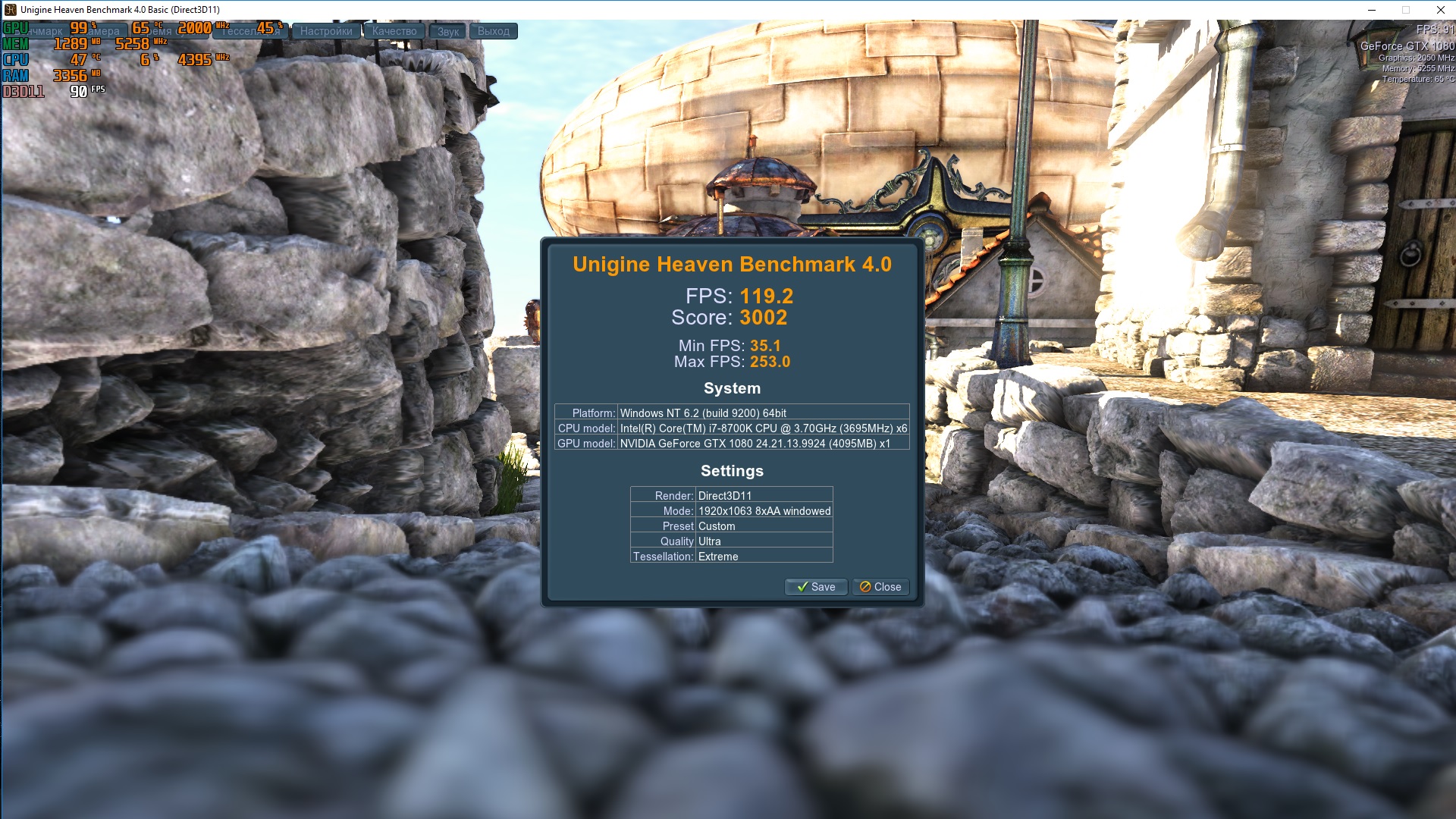 Ну и Heaven прогнал на максимально допустимых настройках