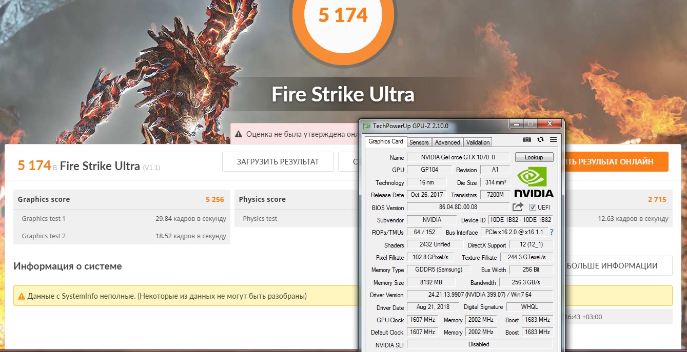 Ещё возвращаемся к твоим "разгон ничего не даёт", "2500к и 2600к быстрее любой рязани" и "1070ti равна 1080" Вот твой результат на 2600к + 1070ти с экспертным разгоном, который ты сумел накрутить... #77