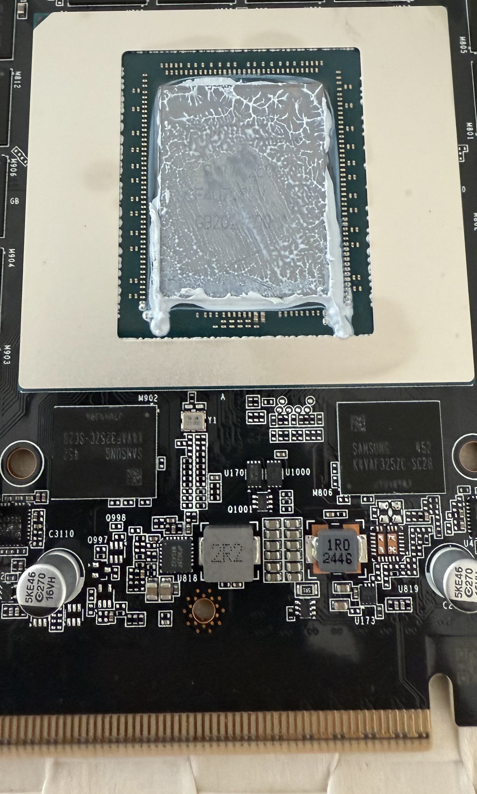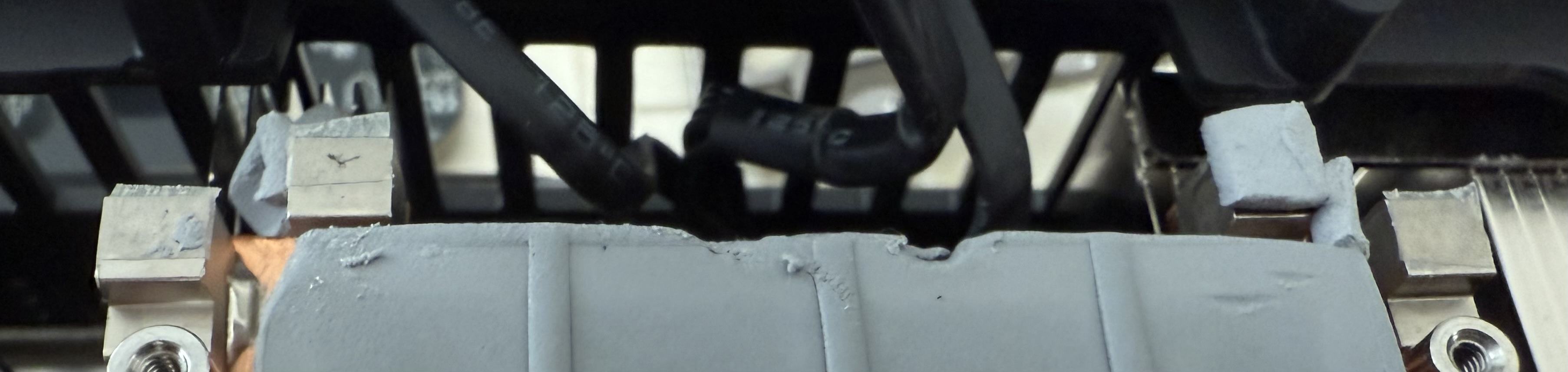 Ну тут скорее выдавленные излишки стекли, а не паста между чипом и радиатором. Ничего криминального не вижу.