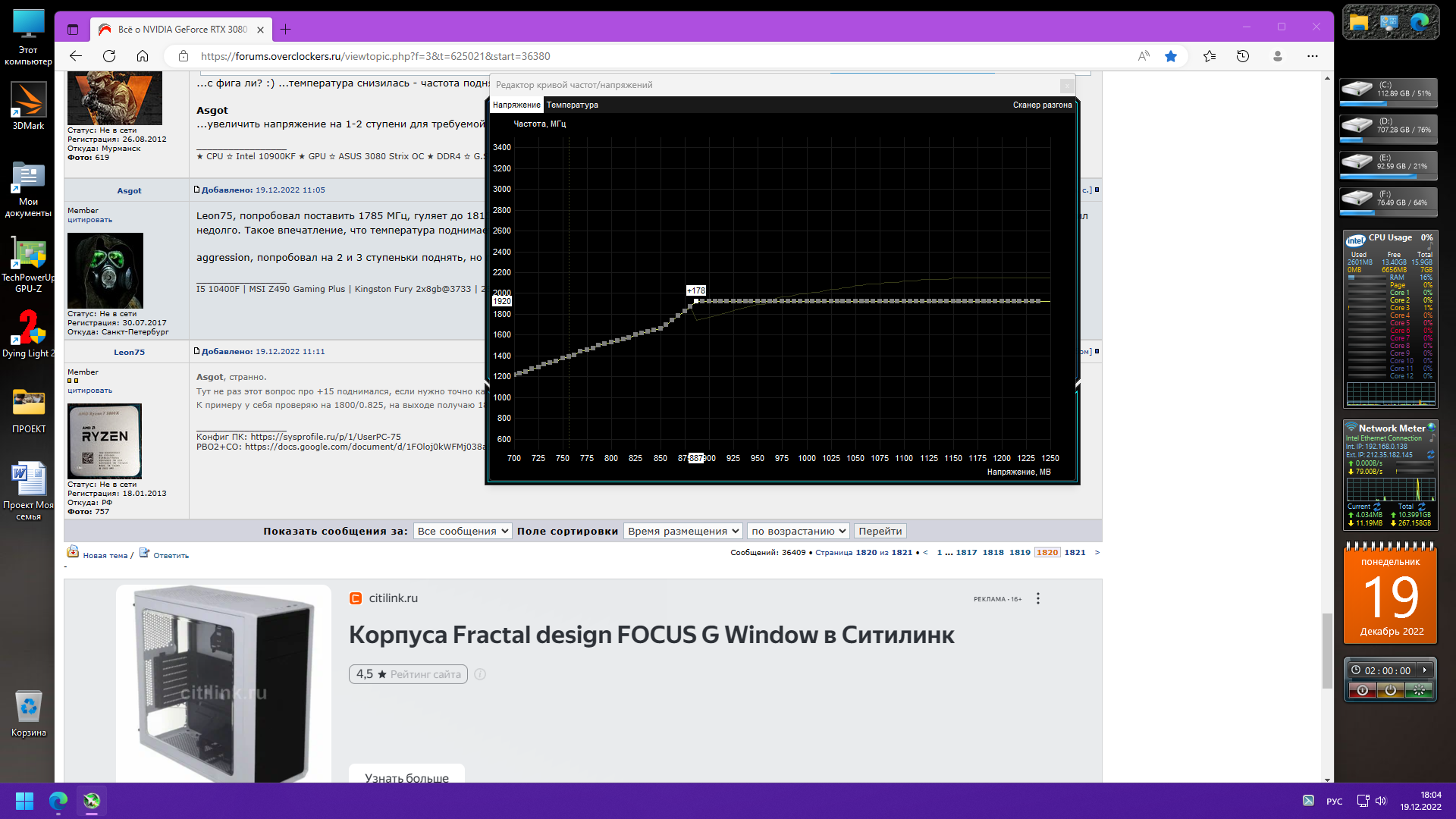 Ну а вот нынешний там спай на 1935 (1950 что на скрине это видно в самом начале прыгнуло). И это ни разу не скриншотный вариант, правда и не скажу что прям железностабильный вариант, пока в экспериментах от делать нефига, но в Dying Light 2 дней несколько побегал, пока всё нормально.