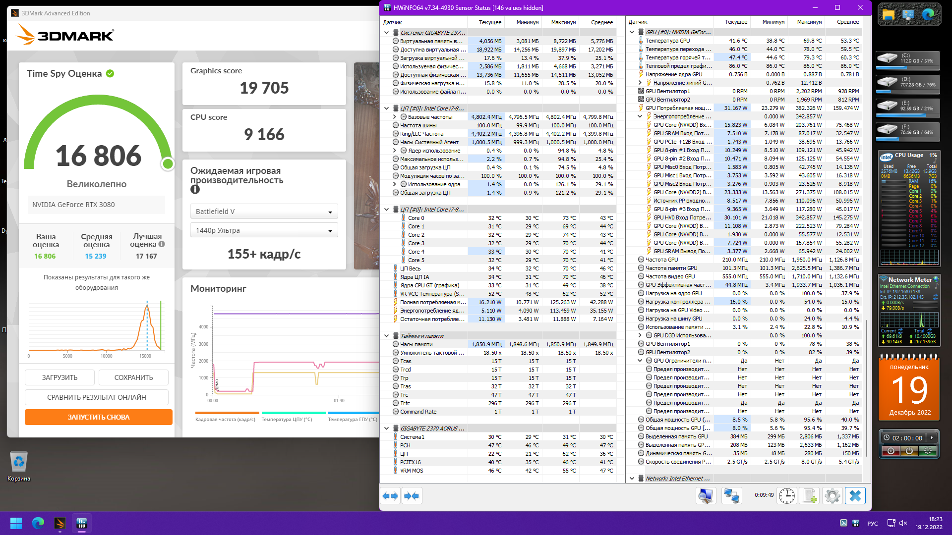 в стоке 3080 12гб выбивает 19500 в тайм спай?