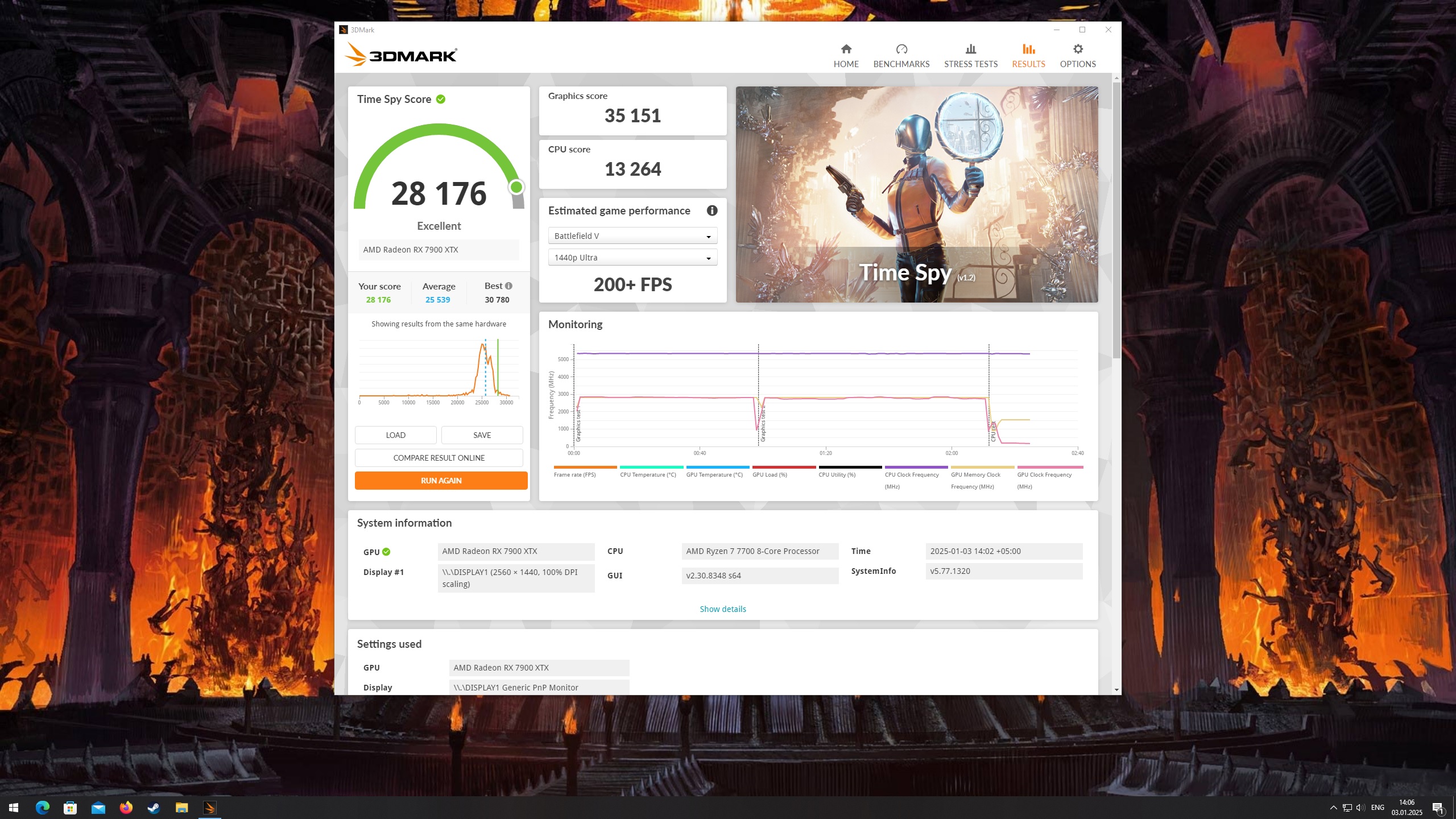 По графике побольше, проц конечно меньше Steel Nomad надо будет на воде прогнать. Пока максимум 7705 набрал в DX12, в Vulkan чуть больше. В Port Royal от 18796 до 18859.