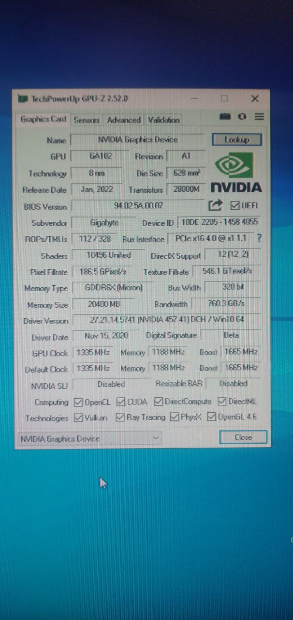 Так, W1zzard сегодня выложил новую версию GPU-Z (2.52.0) в которую добавил совместимость с RTX 3080 Ti на 20GB. Теперь эти карты будут определяться верно. Вот скриншот программы как раз с такой карты: RTX 3080 Ti Xtreme 20GB от GIGABYTE (GV-N3080TAORUS X-20GB).