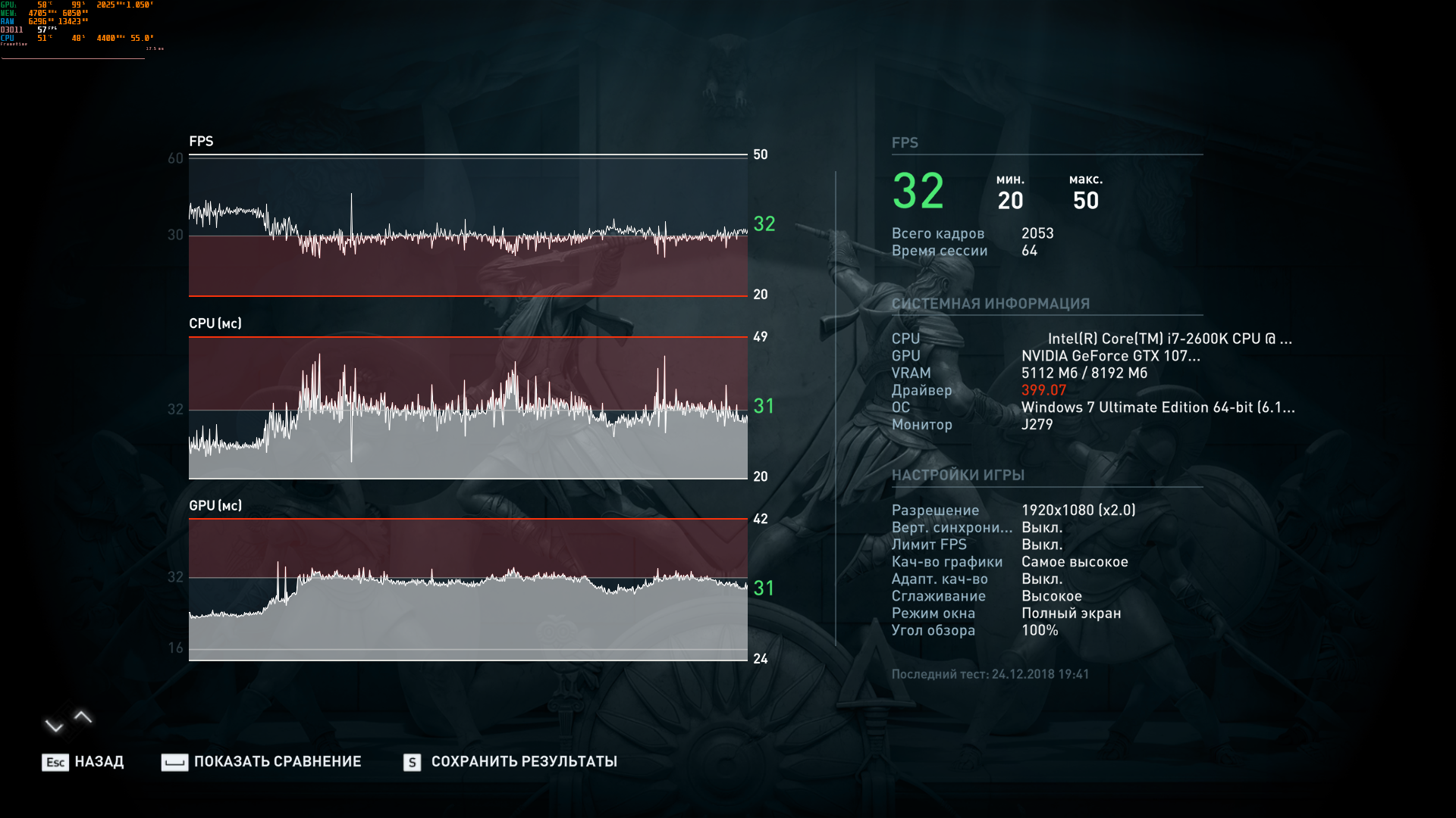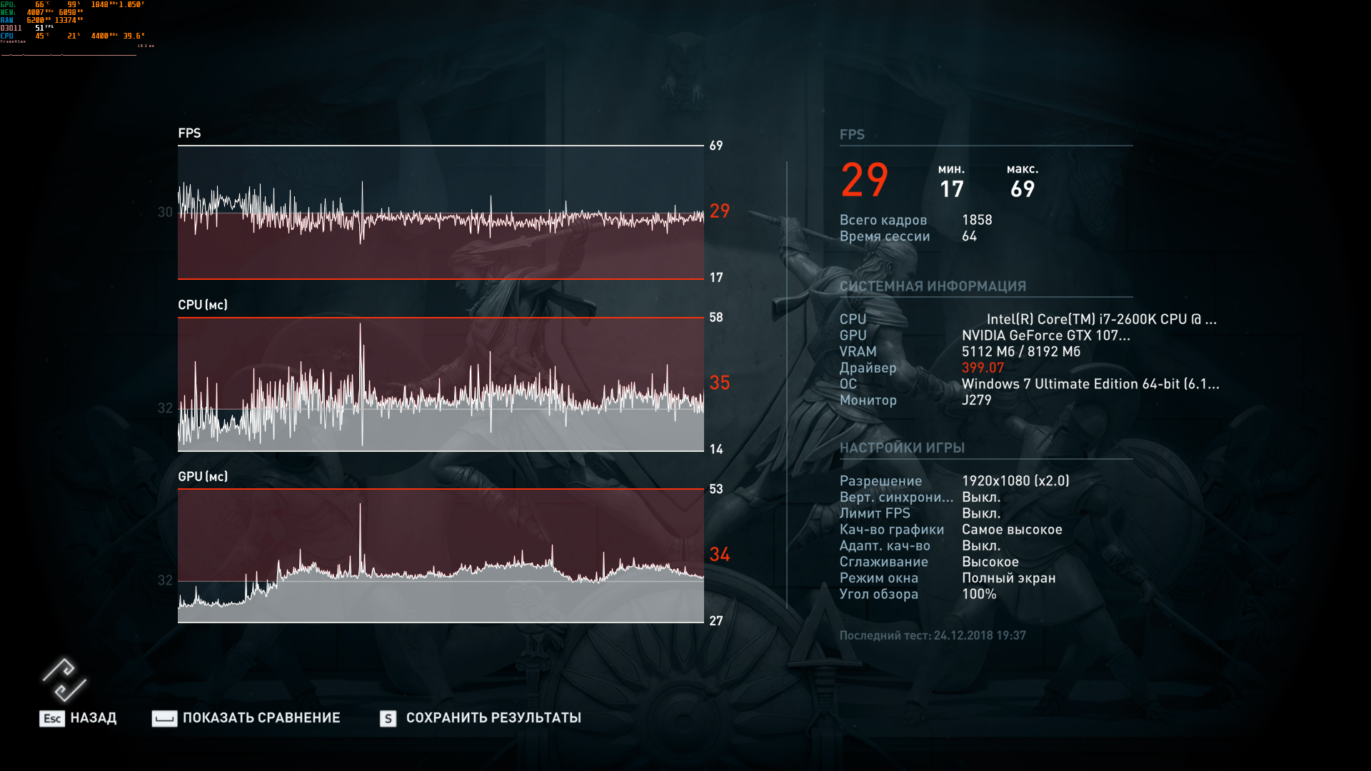 всё на максимум + разрешение 200%... 1080 сток 32 1080 разгон 34 простейшая математика и как видно 27 кадров на 1070 и 32 кадра на 1080 - это показатель что 20% ниразу не помогут