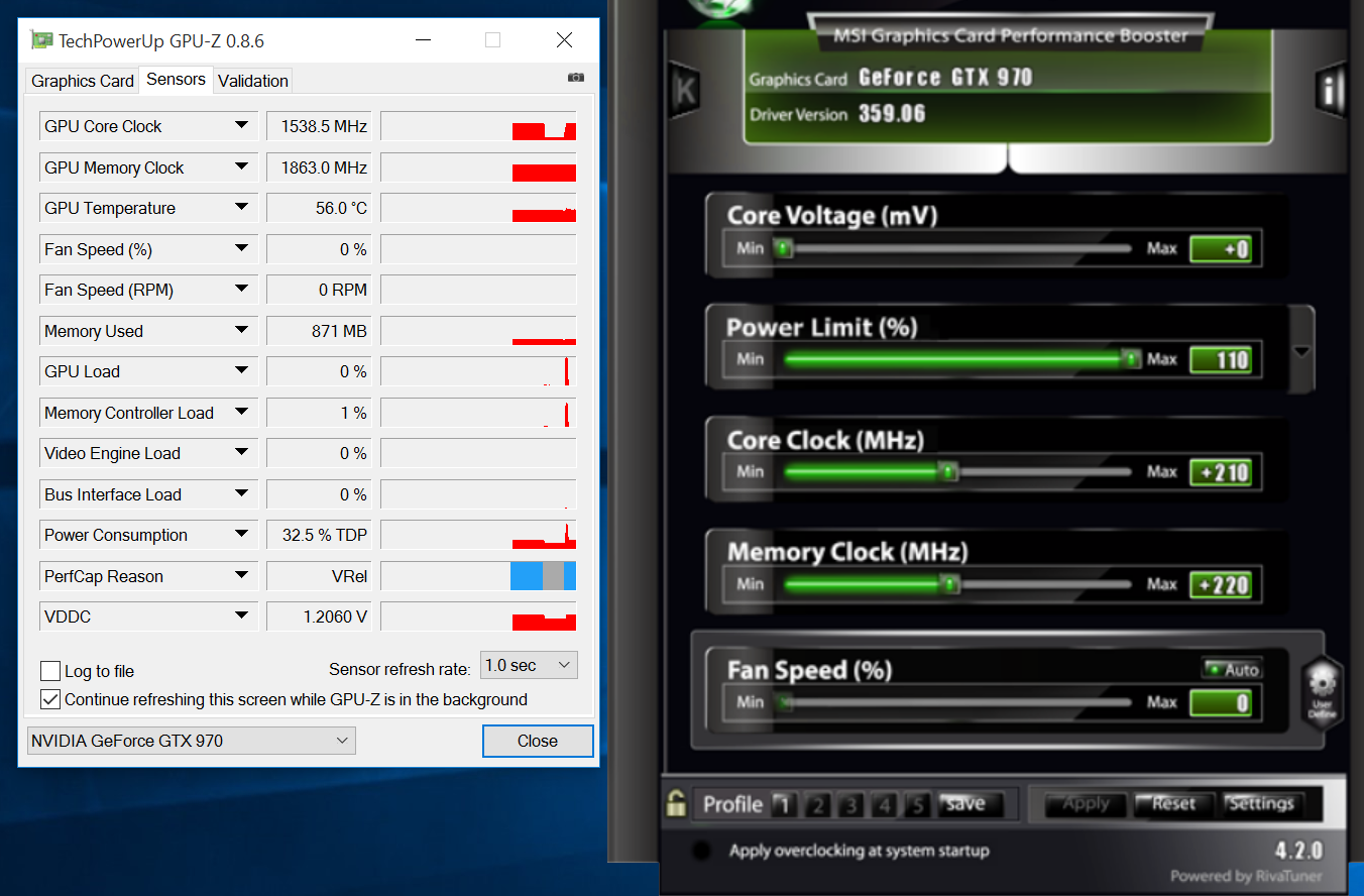 Всем привет. Есть карта msi gtx 970 gaming. По ядру гонится без увеличения напряжения +210 (1538 в бусте), дальше уже не гонится даже с увеличением напряжения.