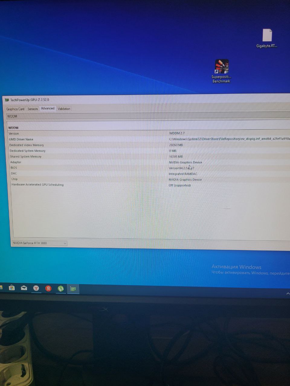 Это вот этот скриншот: https://imgbb.com/C7ncqyd ? Там просто закрыта строка с версией драйвера, вот и не совсем понятно. Кроме этого на нём нет нагрузки в виде Superposition.