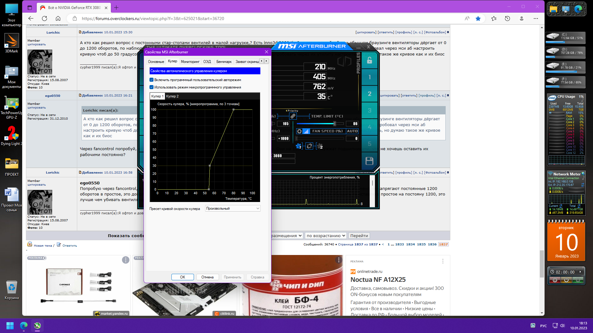 А кто как решил вопрос с постонными стар-стопами вентилей в малой нагрузке,? Есть inno3d 3080 ti x3, с автонастройкой при обычном браузинге вентиляторы дёргает от 0 до 1200 оборотов, по наблюдениям при меньше 42 градусах стоп, при 44 старт, какое то вредительство сделать столь малую дельту, пробовал через мси аб настроить кривую чтоб до 50 градусов 0% оборотов, нехочет, 1200 крутит без остановки, осталось попробовать через их утилиту настроить, но думаю такое же кривое как и их биос